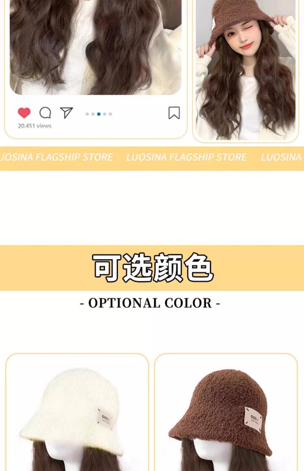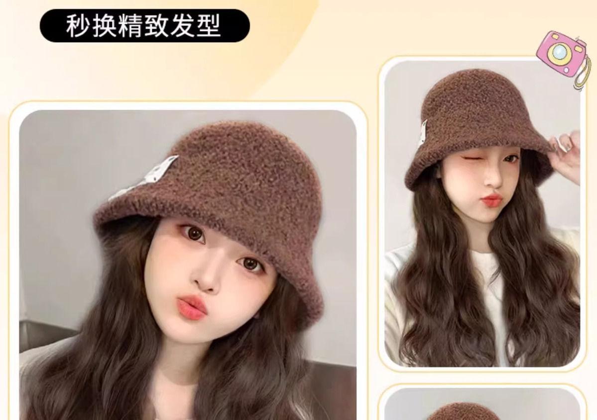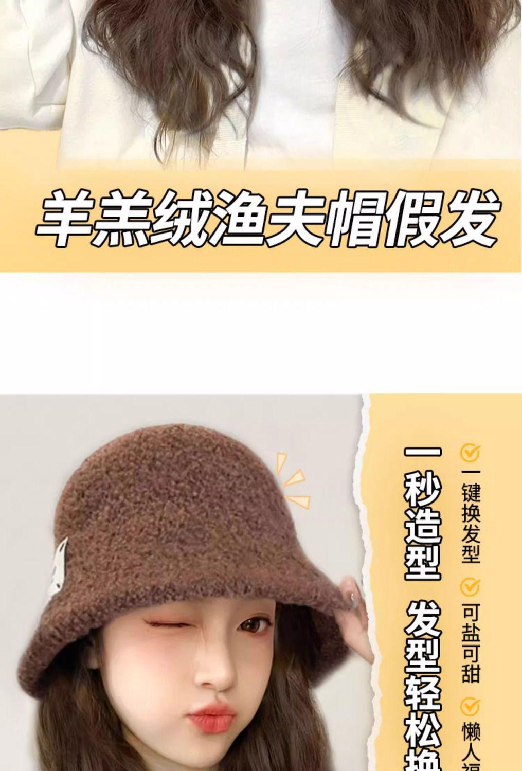 Peluca de sombrero Ruolan integrada para otoño e invierno, nueva peluca de sombrero de pescador con ondas de agua y esponjosa natural.