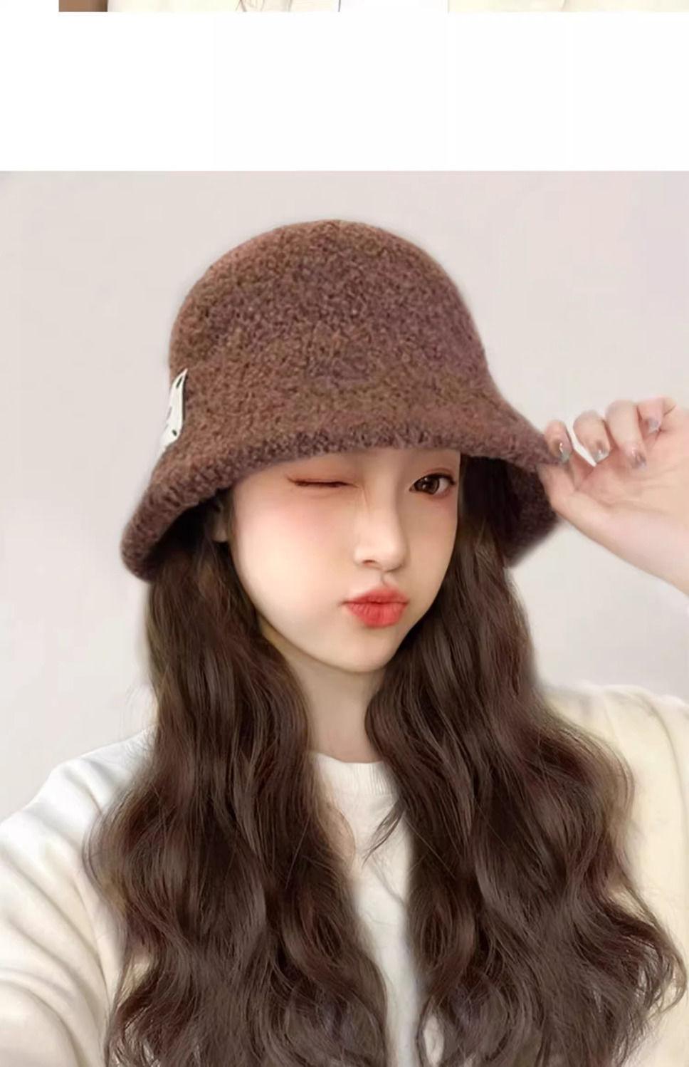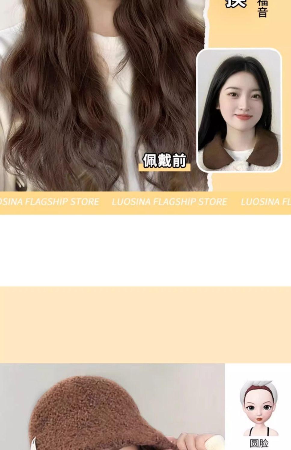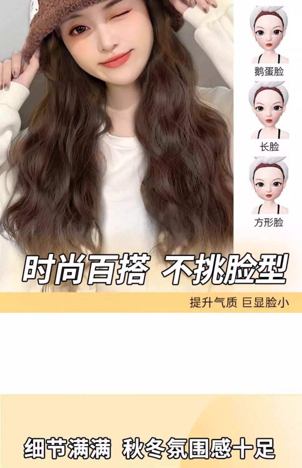 Peluca de sombrero Ruolan integrada para otoño e invierno, nueva peluca de sombrero de pescador con ondas de agua y esponjosa natural.