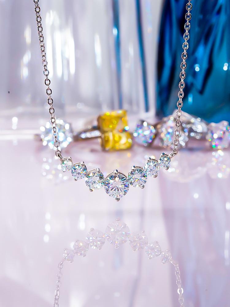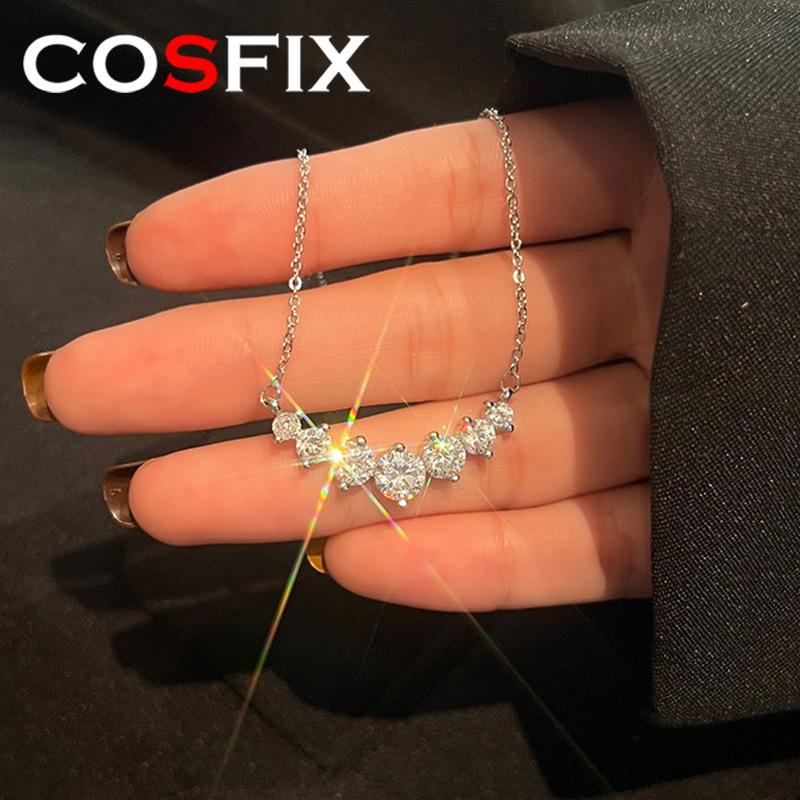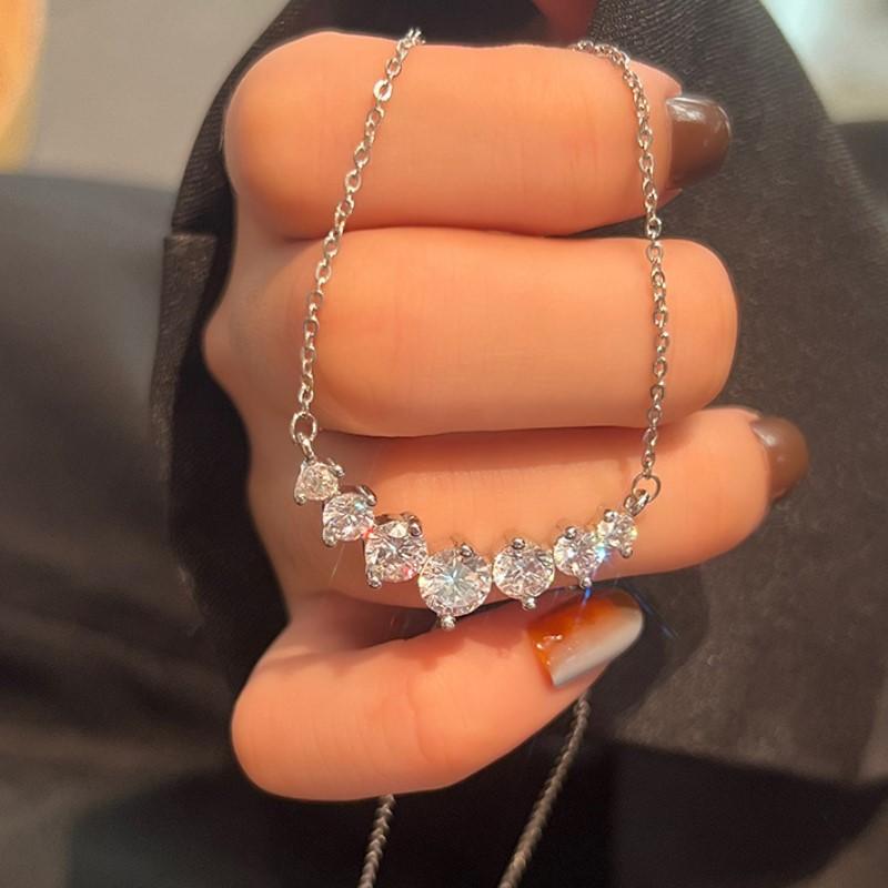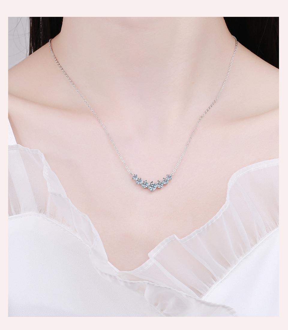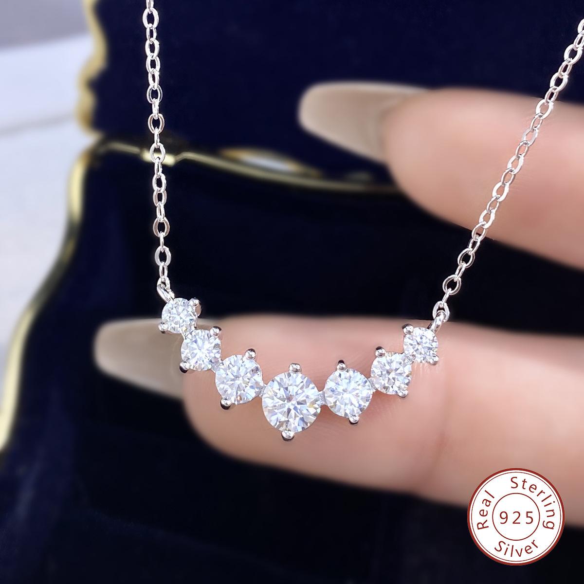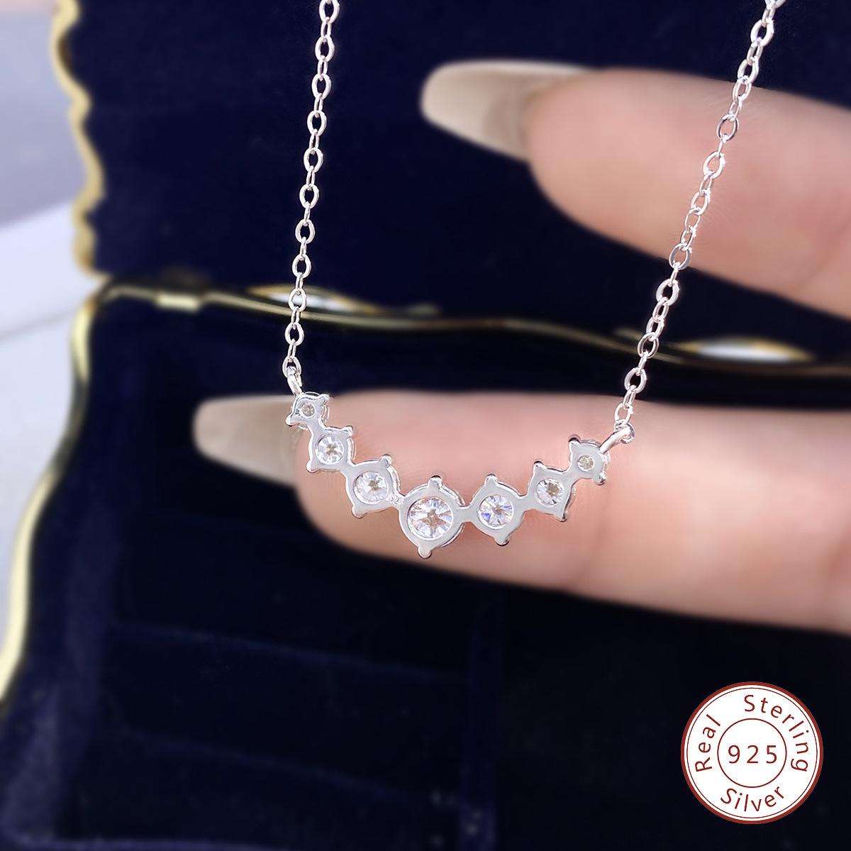 Collar con colgante de moissanita con forma de princesa y sonrisa simple, plata de ley 925, platino PT950, cadena de clavícula con tono vibrante.
