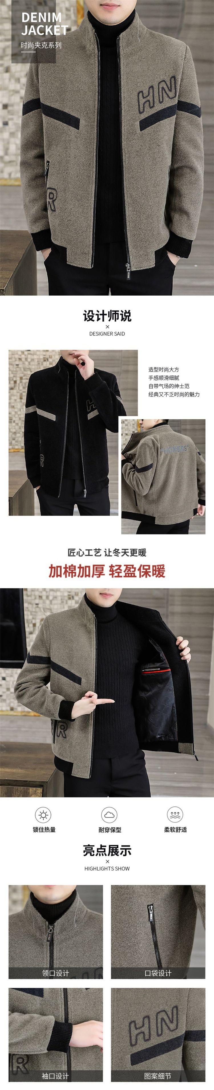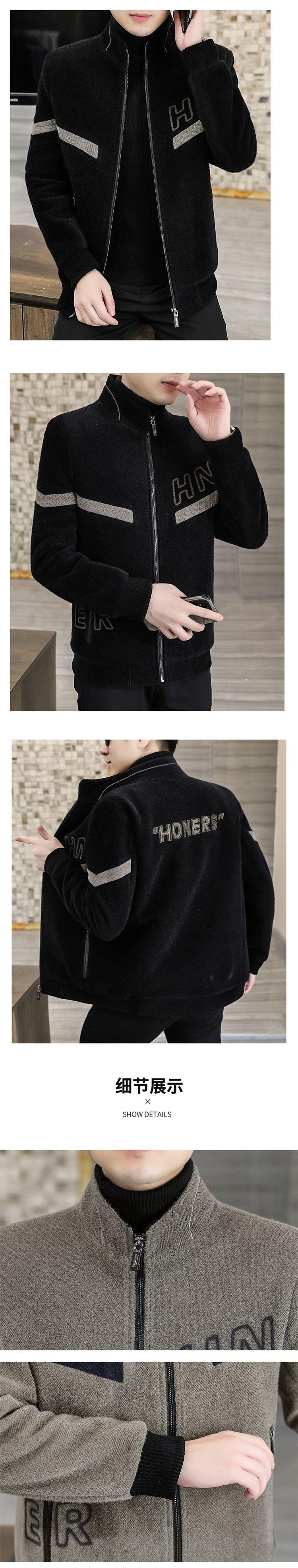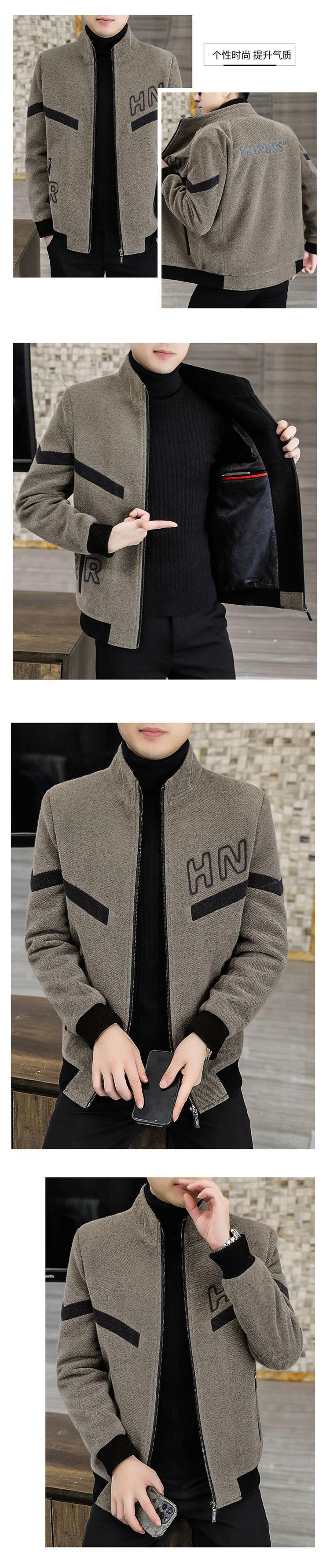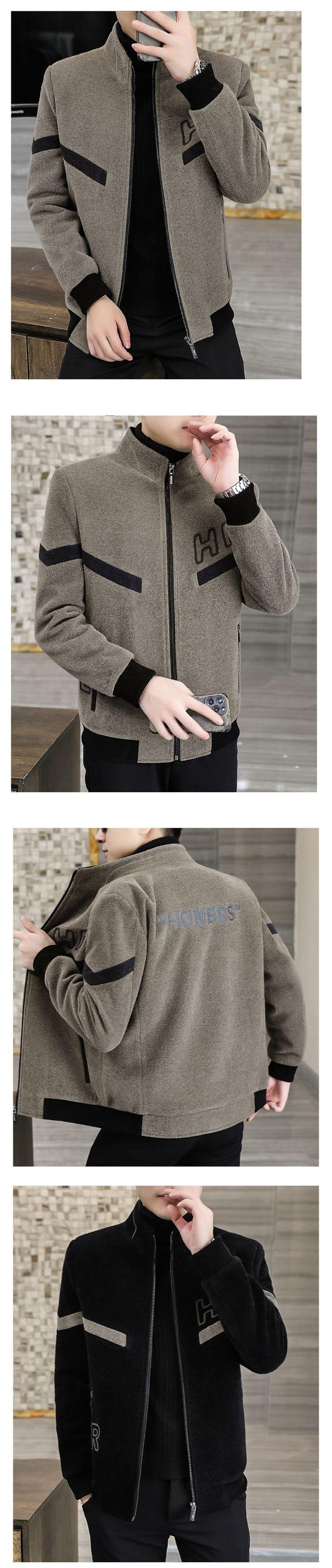 Nuevo Abrigo de Otoño e Invierno para Hombre de Chenilla más Lana, Ajustado, Cuello Mao, Chaqueta Casual de Largo Medio