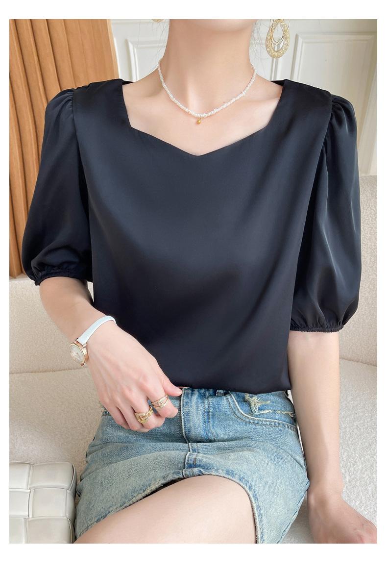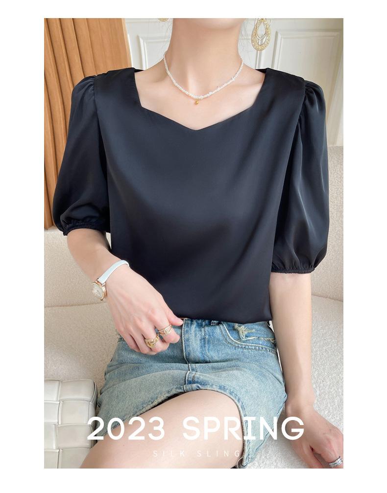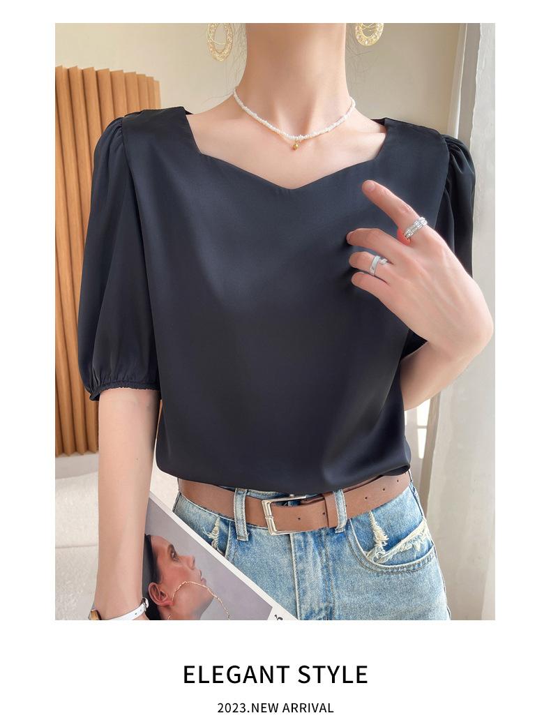 Camisa de gasa, camiseta de manga corta para mujer, novedad de verano 2023, hermosa camiseta de diseño de alta gama, camiseta de nicho con media manga