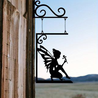 Placa decorativa de metal para puerta exterior Temu, decoración colgante, estación independiente transfronteriza, silueta de metal con arte de hadas moderno