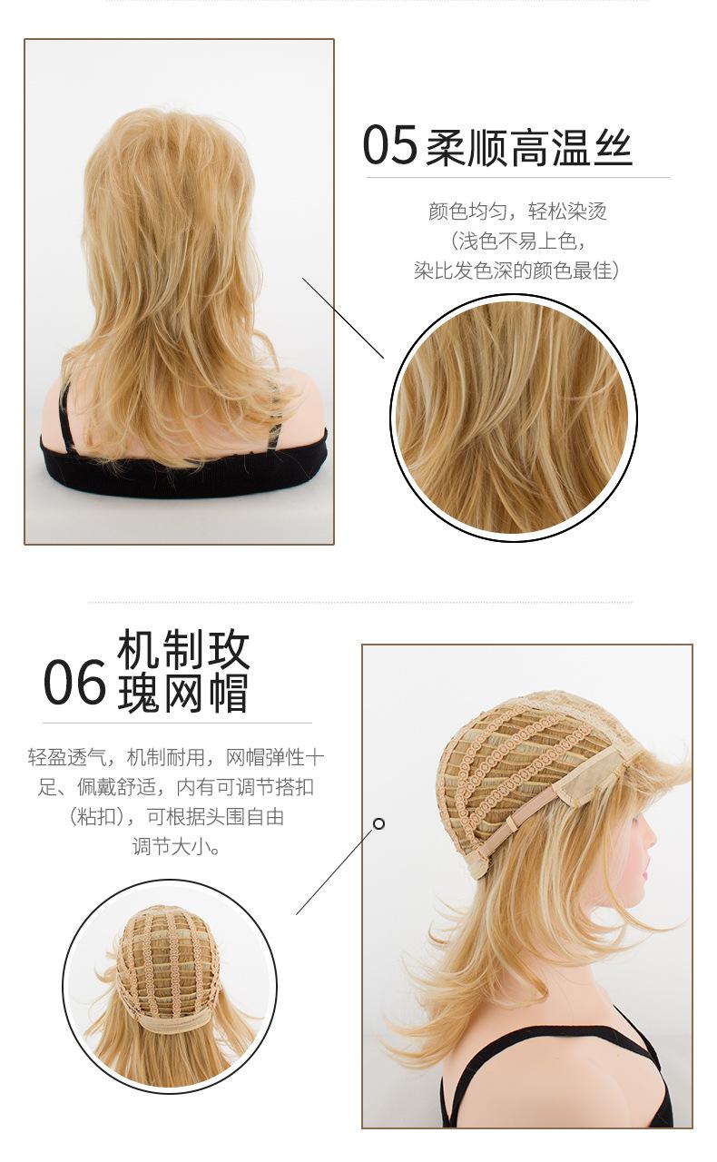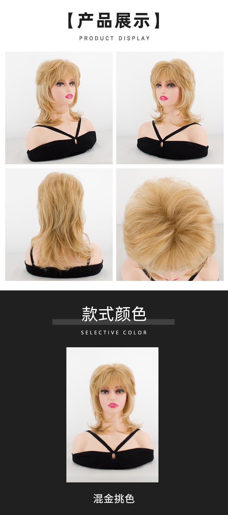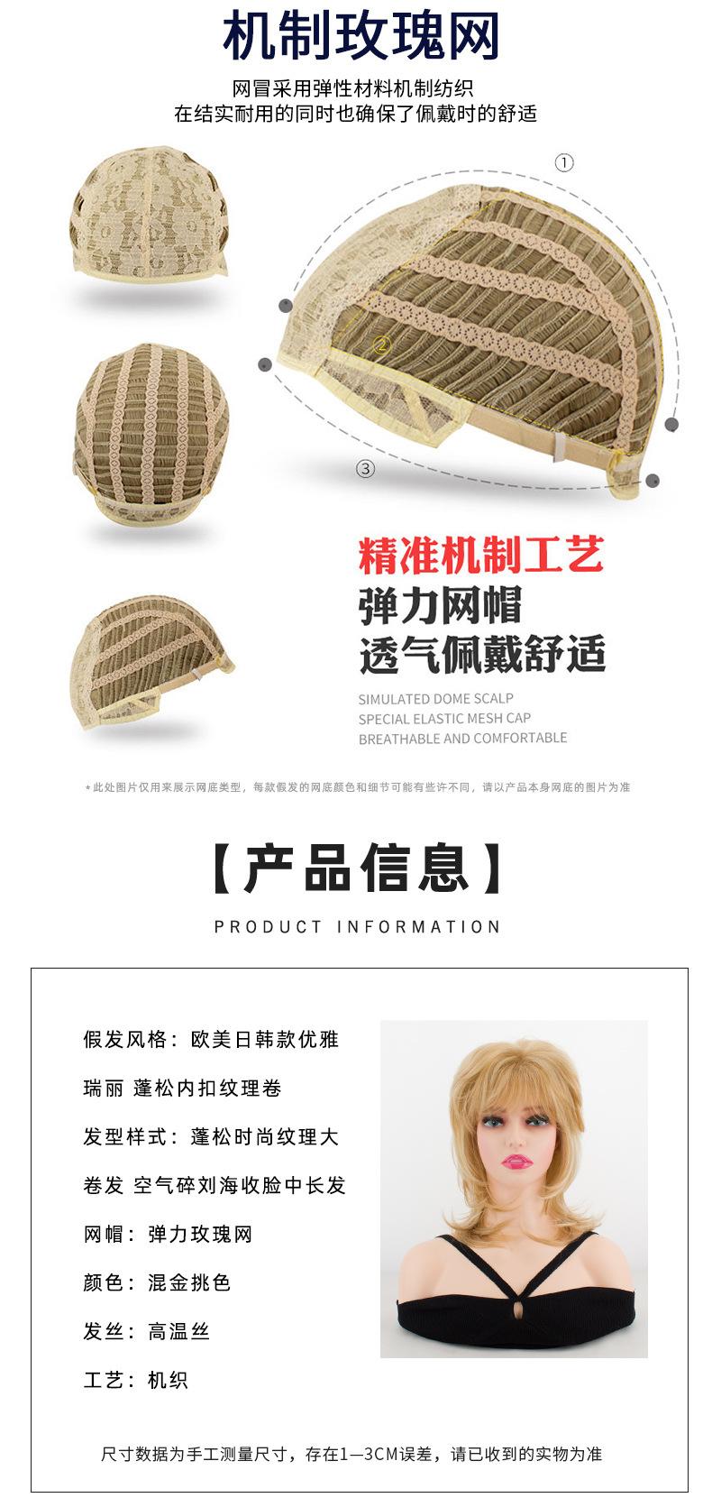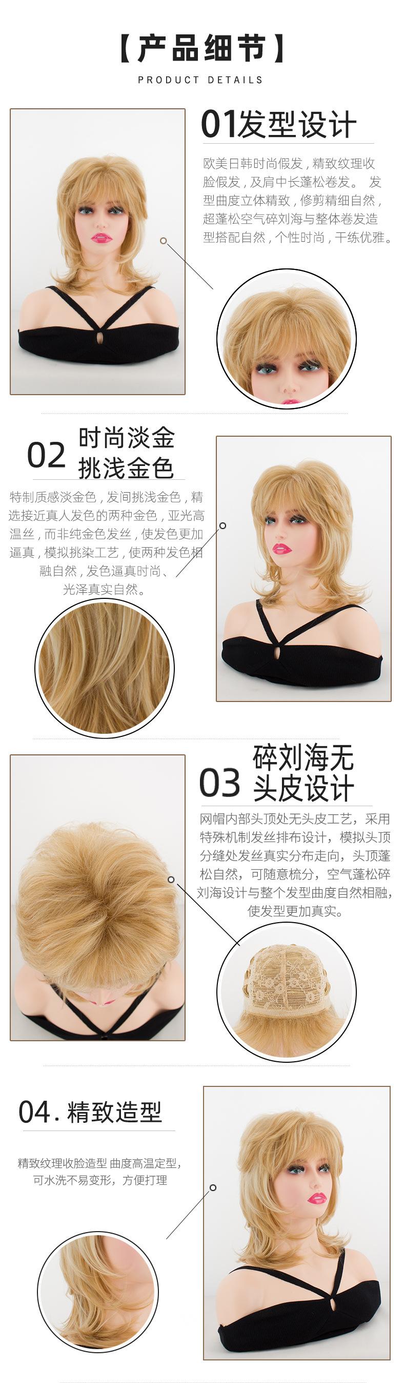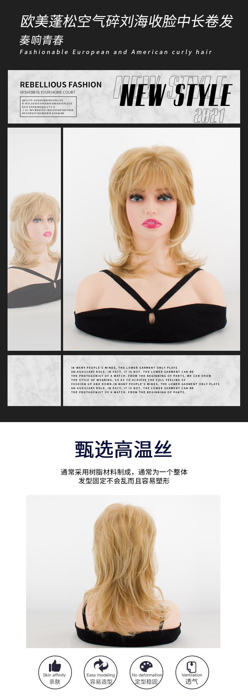 Peluca de moda europea y americana con textura mixta de color dorado, peluca de textura esponjosa, cabello grande y rizado, flequillo roto al aire, cabello de longitud media