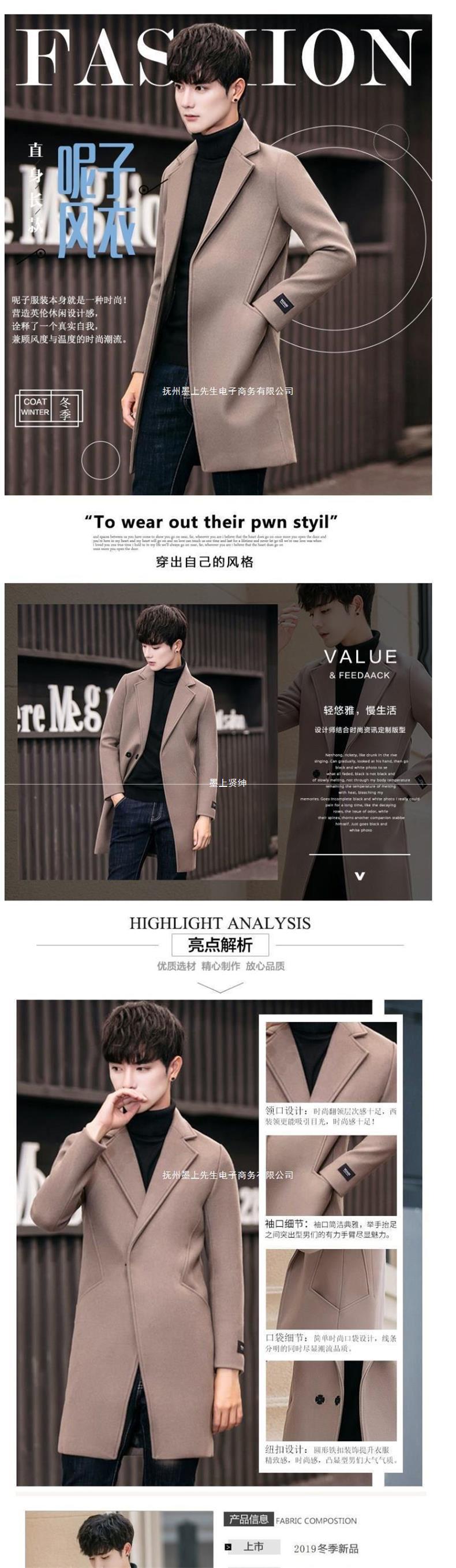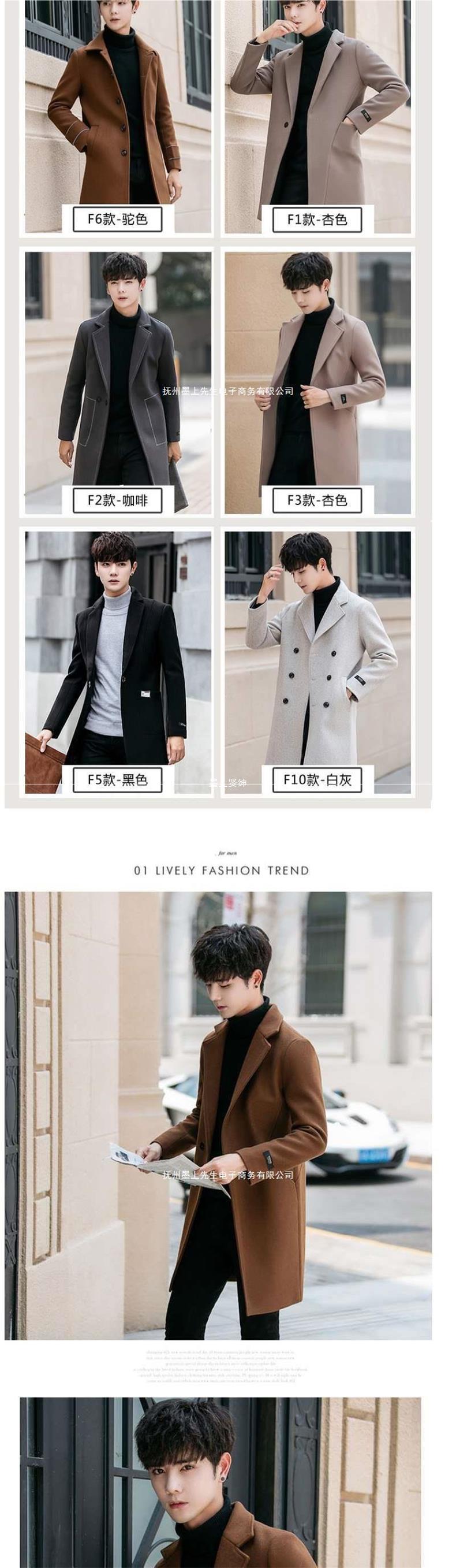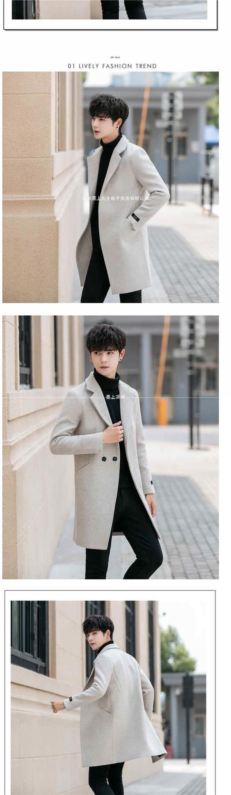 Gabardina de hombre de longitud media, ajustada, estilo coreano, nuevo abrigo de lana de invierno 2021, elegante y a la moda.