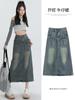 Falda vaquera de verano 2023 para mujer, falda de corte A de longitud media, cintura alta, adelgazante, falda con abertura pequeña