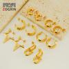 Pendientes con hebilla de oreja rectangular de acero inoxidable dorado de estilo europeo y americano, modernos, combinables, de estilo simple, de acero de titanio, geométricos, para mujer