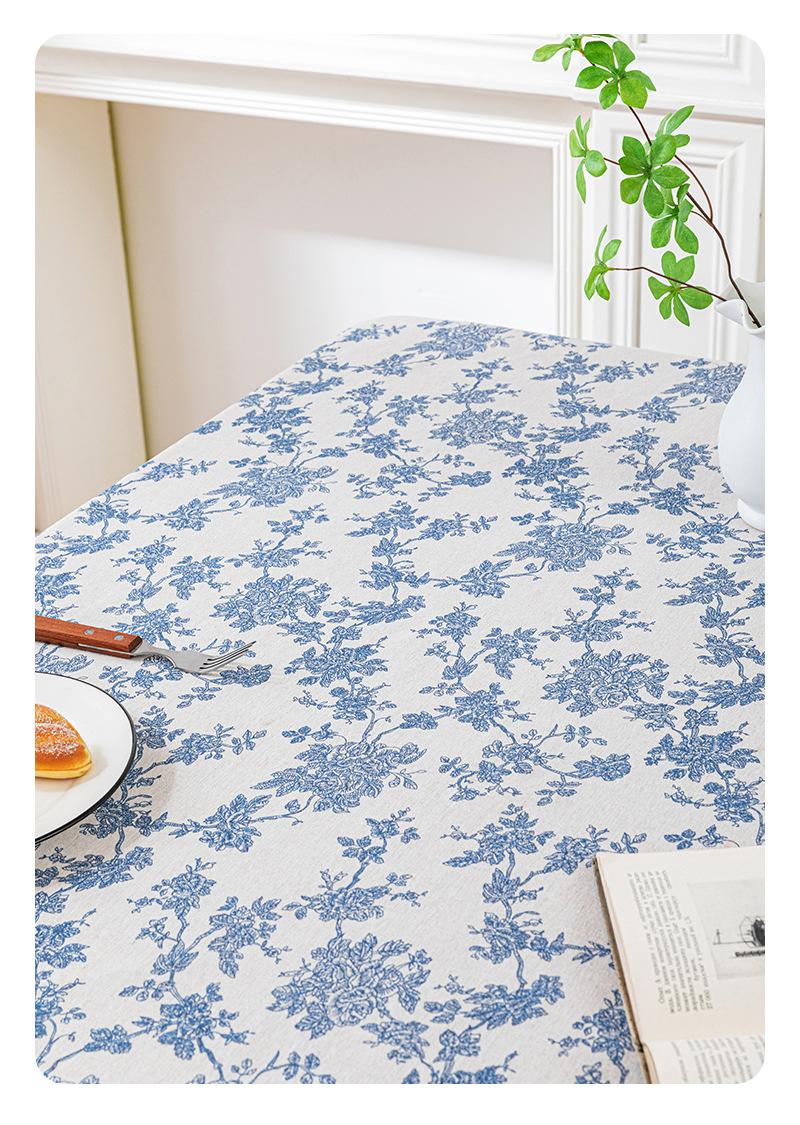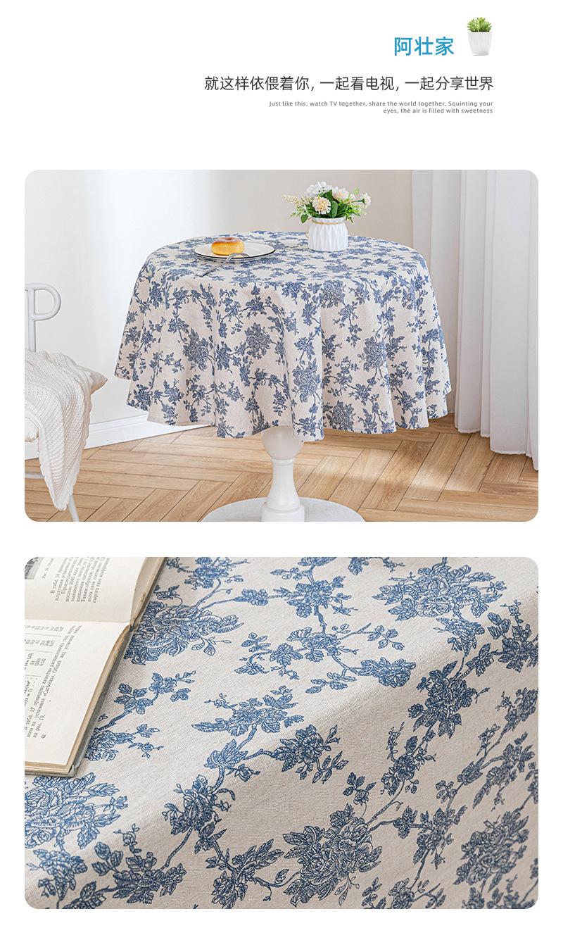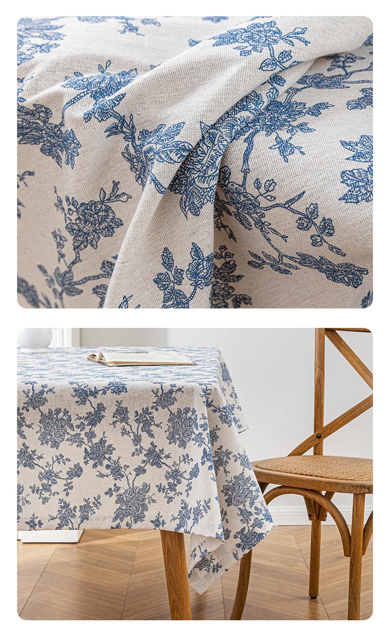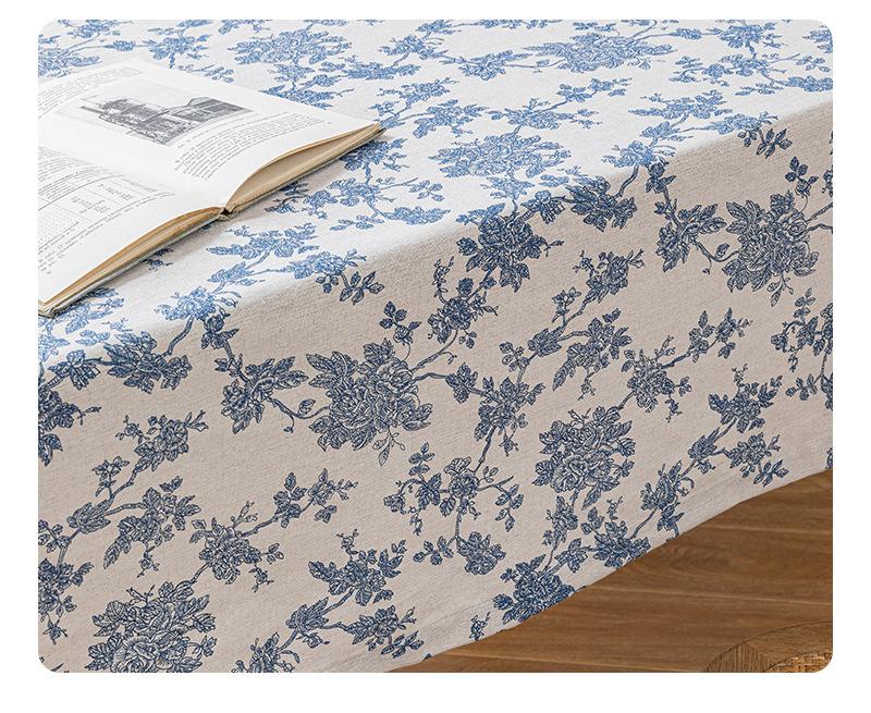 Mantel de Mesa Floral Retro Estilo Pastoral Estilo Ins Azul Algodón y Lino Mantel de Mesa para Mesa de Centro Mantel para Mesa Redonda Pequeña Cubierta de Tela Porcelana Azul y Blanca