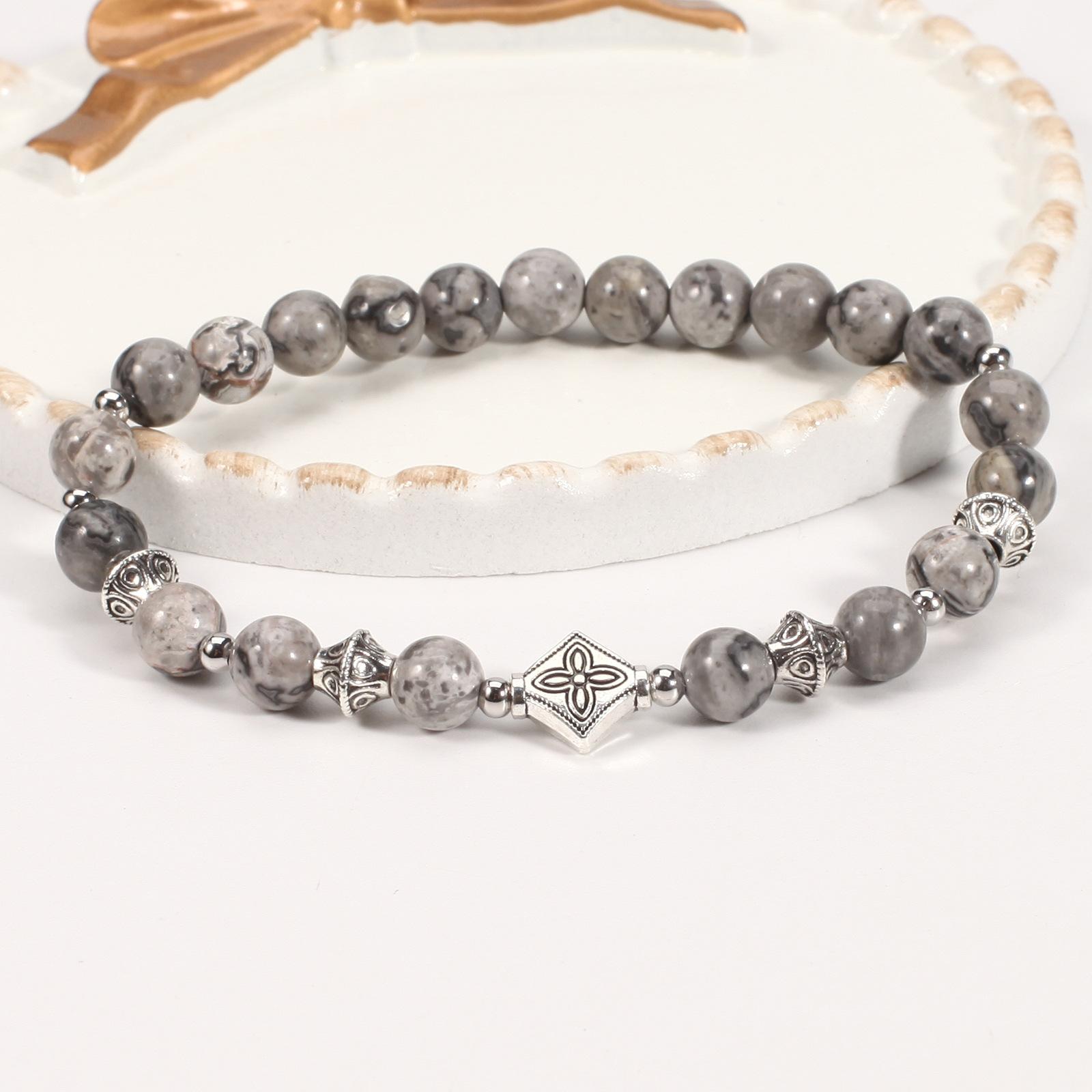 Pulsera de piedra natural de trébol de 6 cm exclusiva de comercio exterior transfronterizo, pulsera elástica con cuentas ajustable en stock al por mayor