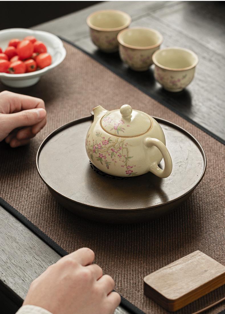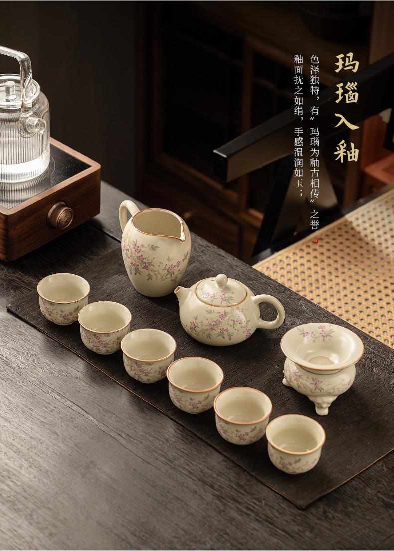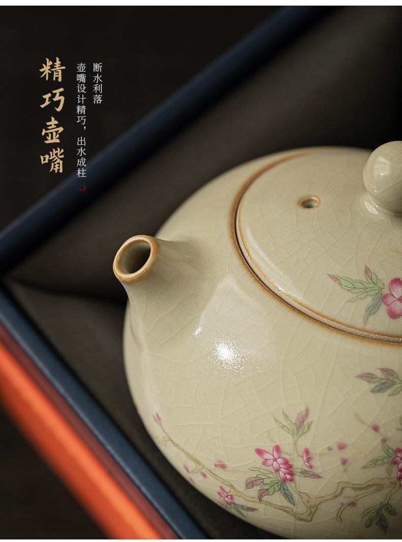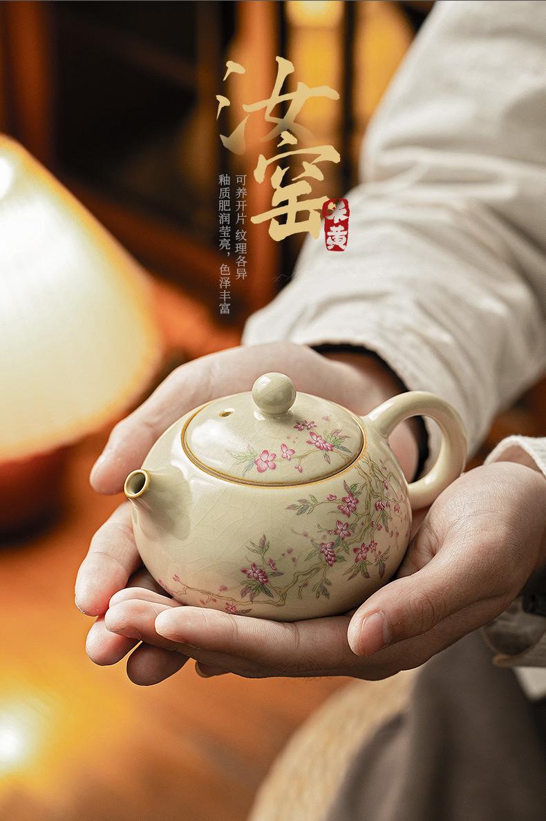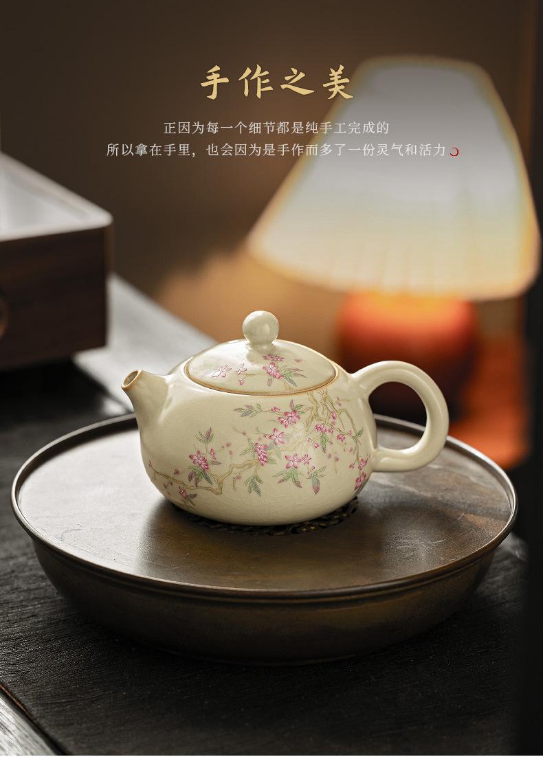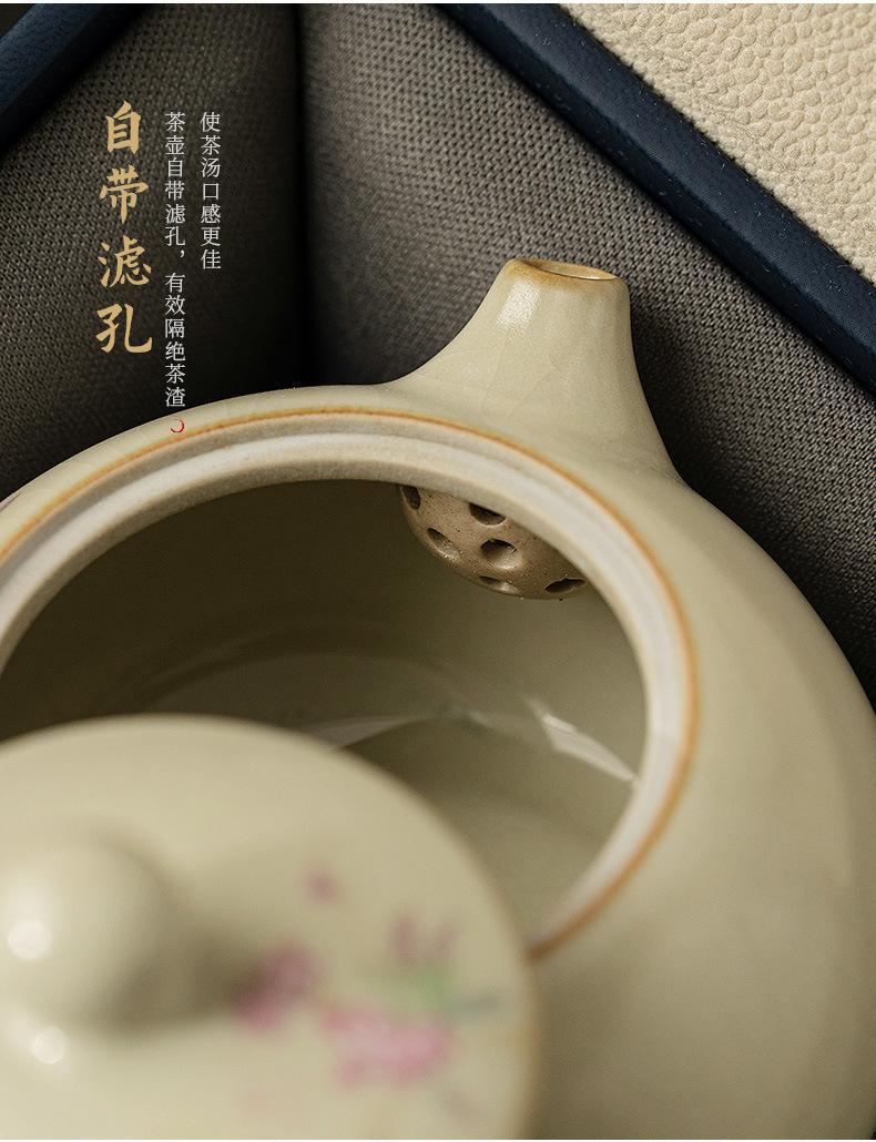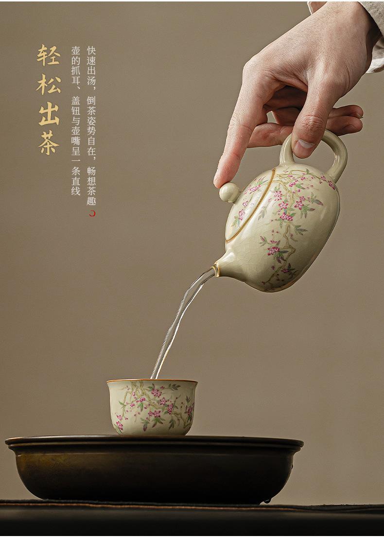 Tetera beige Ruyao Xishi, taza de té, juego de té para ceremonia de té Kungfu, tetera individual, dispositivo de cerámica para preparar té para el hogar