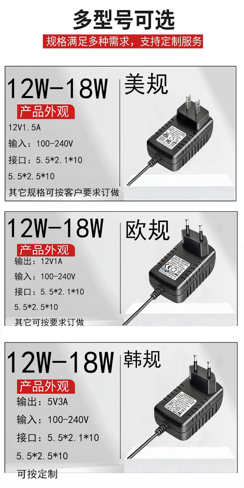 12v1a us standard, 12v1.5a us standard, 5v2.5a us standard, 24v0.75 us standard, 5v3a us standard, 6v2a us sta...