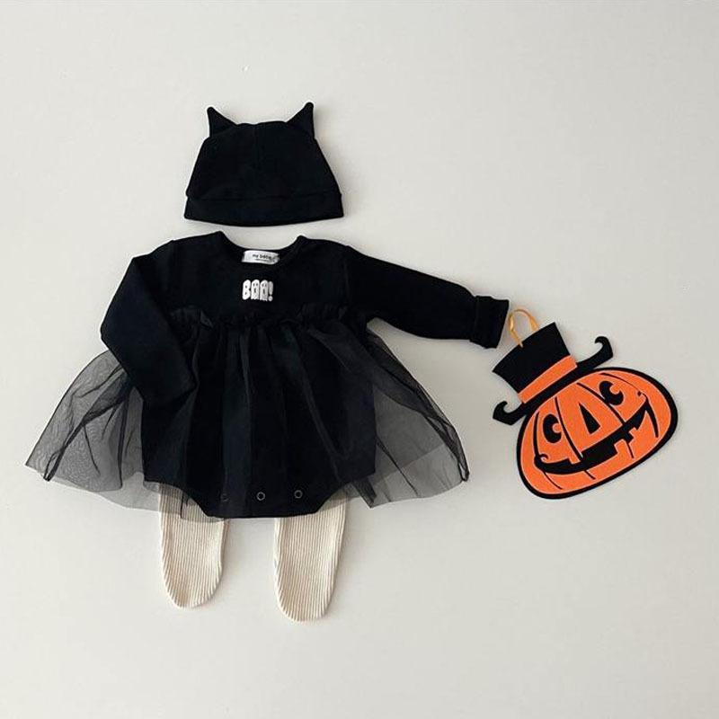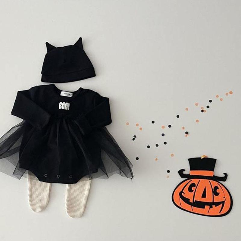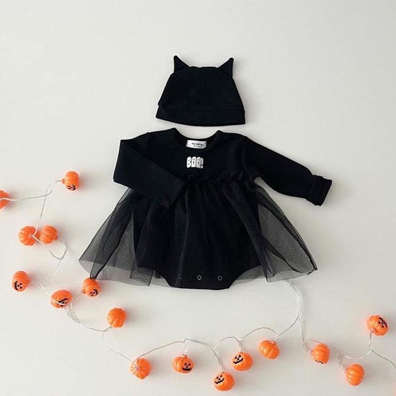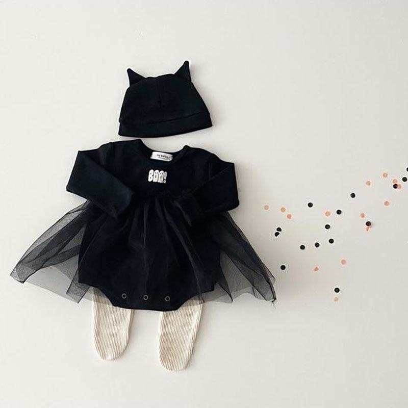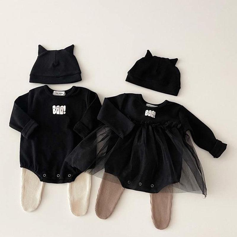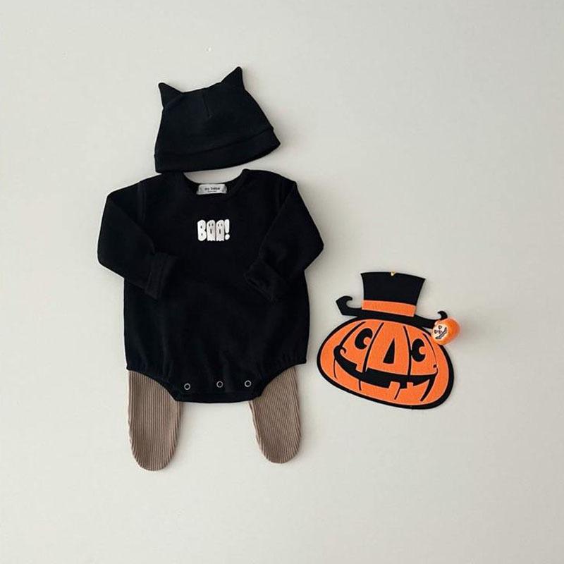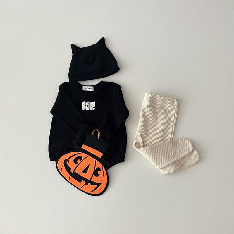 25 otoño e invierno versión coreana de mameluco de bebé de manga larga ins estampado de fantasma de Halloween ropa de pedos con bolsa khafu
