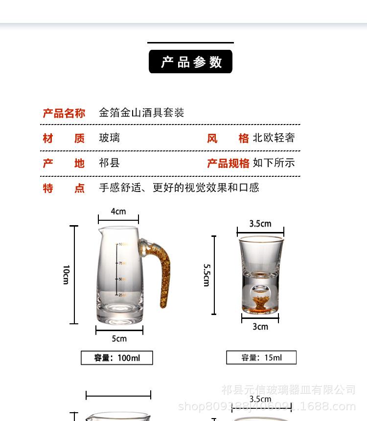 Copa de vino blanco con lámina de oro, escama de vino, bote para vino, separador de vino Jinshan, juego de vino para el hogar, copa de licor, copa de vino pequeña, copa de licor