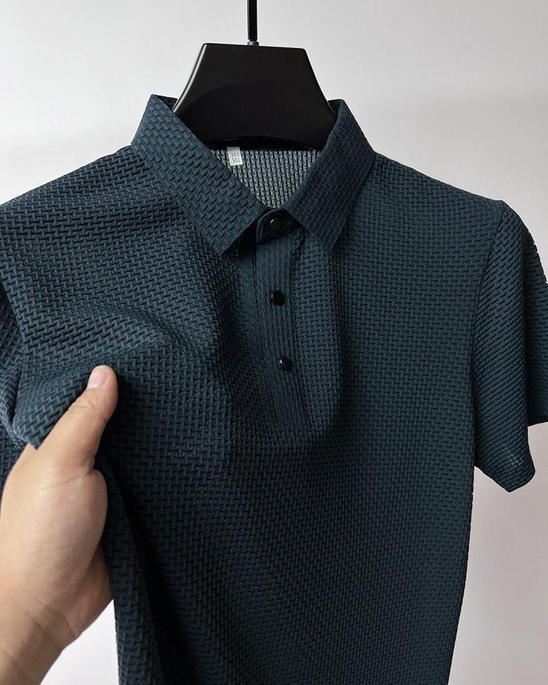 Polo de verano para hombre, camiseta de manga corta de malla de seda helada, cuello de color, ropa de media manga, venta al por mayor transfronteriza