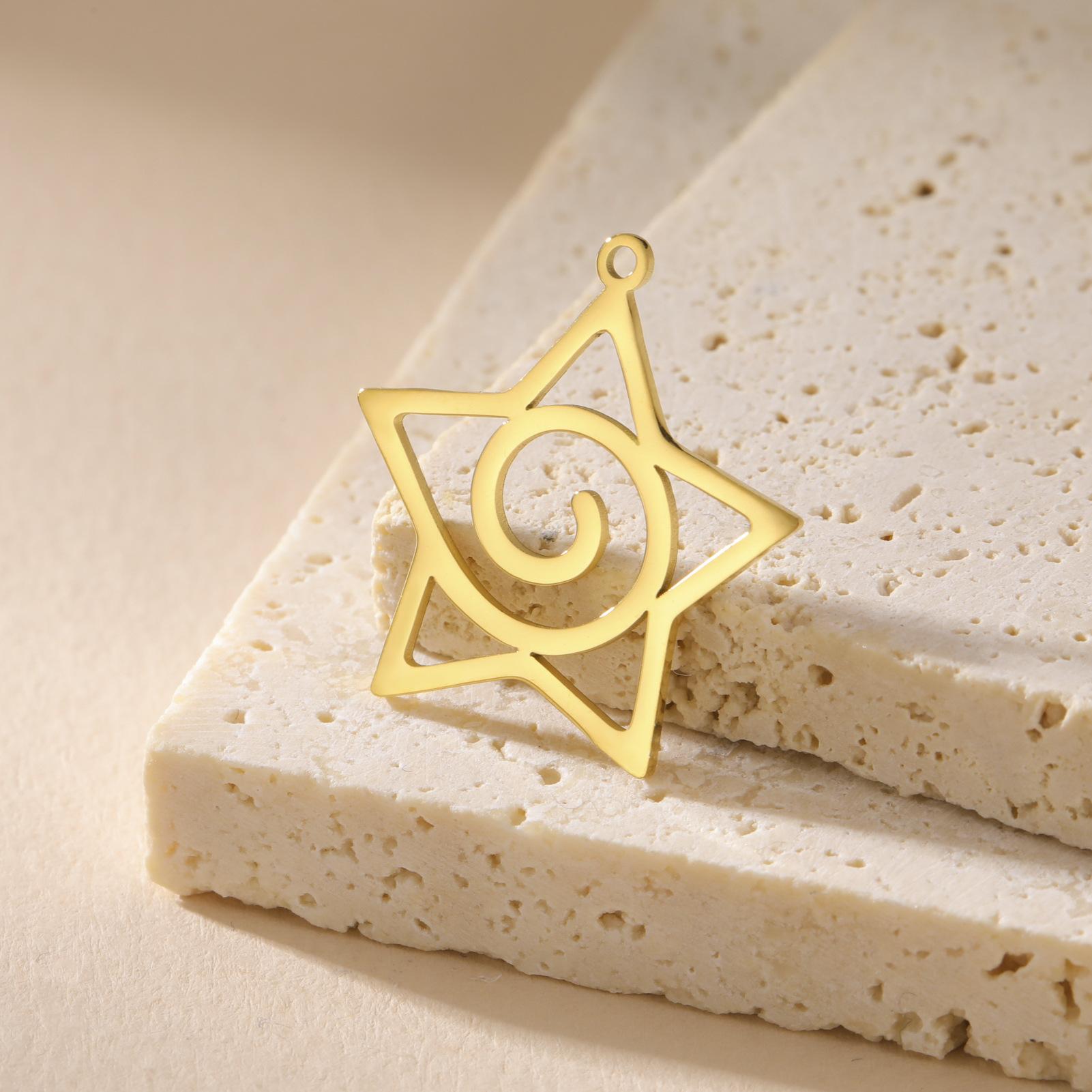 Compra Accesorios de joyería DIY, color oro de 18 quilates, moda Joker, acero de titanio, pentagrama hueco, collar, pendientes, accesorios, colgante pequeño al por mayor en Joom.pro