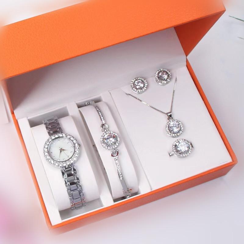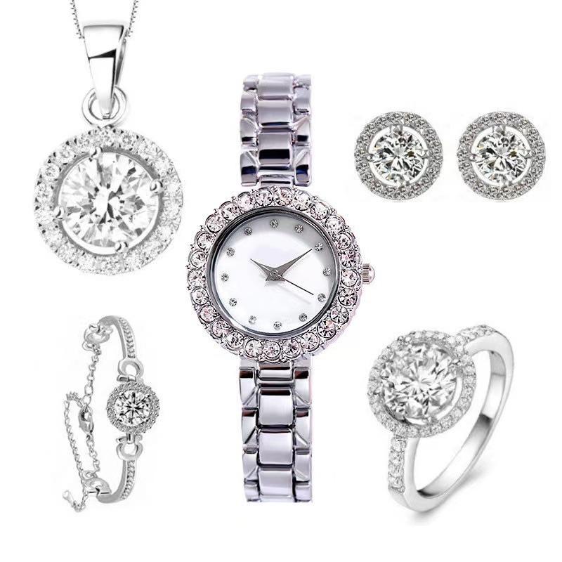 Nuevo reloj de mujer de cinco piezas, superventas, con pulsera a juego y accesorios, ideal como regalo para estudiantes.