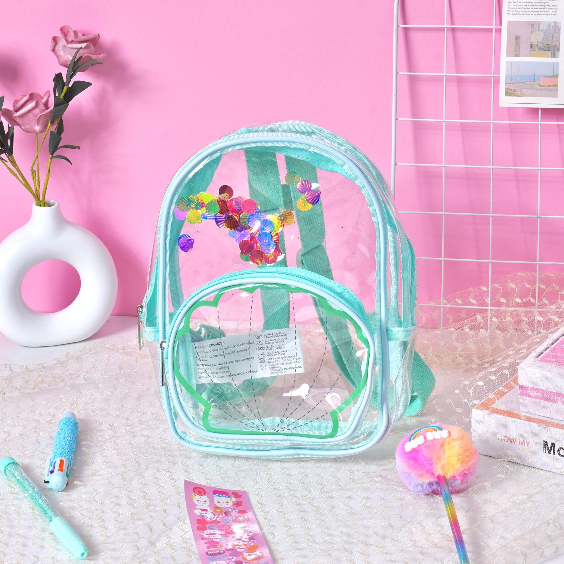 Mochila transparente impermeable transfronteriza en stock Amazon superventas PVC bolsa de almacenamiento de gran capacidad mochila escolar para estudiantes