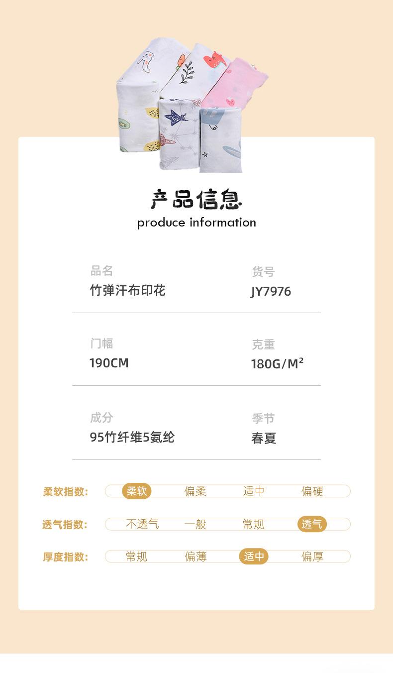 Tejido elástico de jersey de bambú Cool Sense con estampado de fibra de bambú y elastano, tejido de punto, bonito tejido para pijamas de bebé y ropa interior.