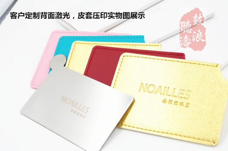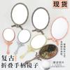Espejo de maquillaje estilo ins, portátil, plegable, de acero inoxidable, resistente a caídas, de PU, con logotipo personalizado.