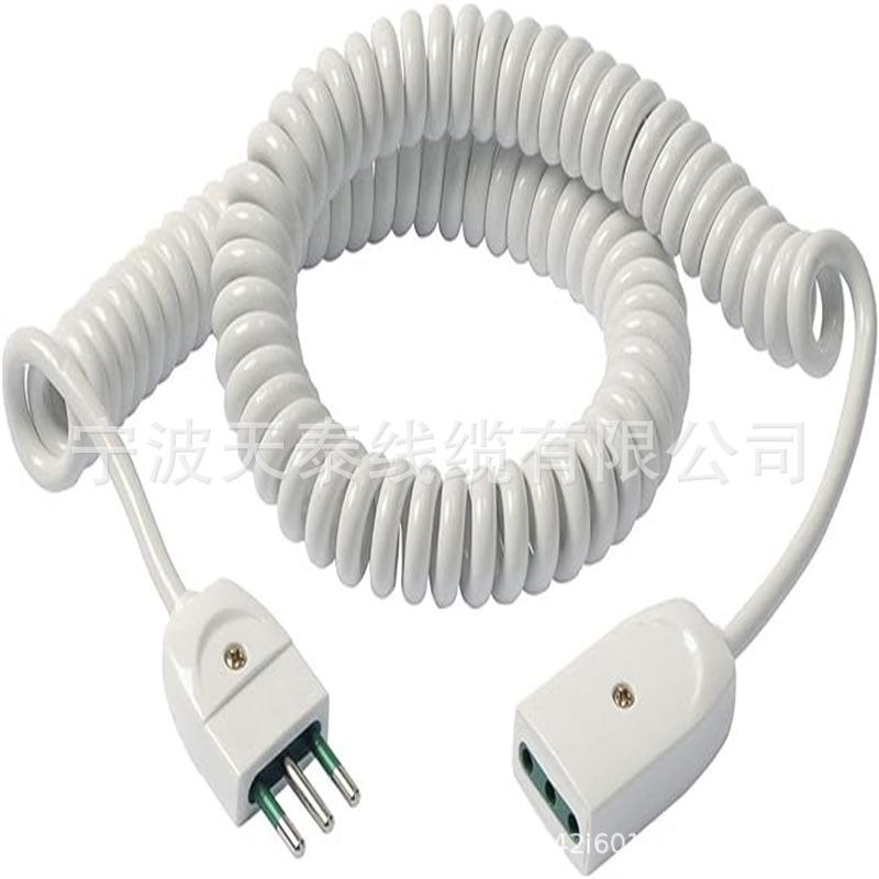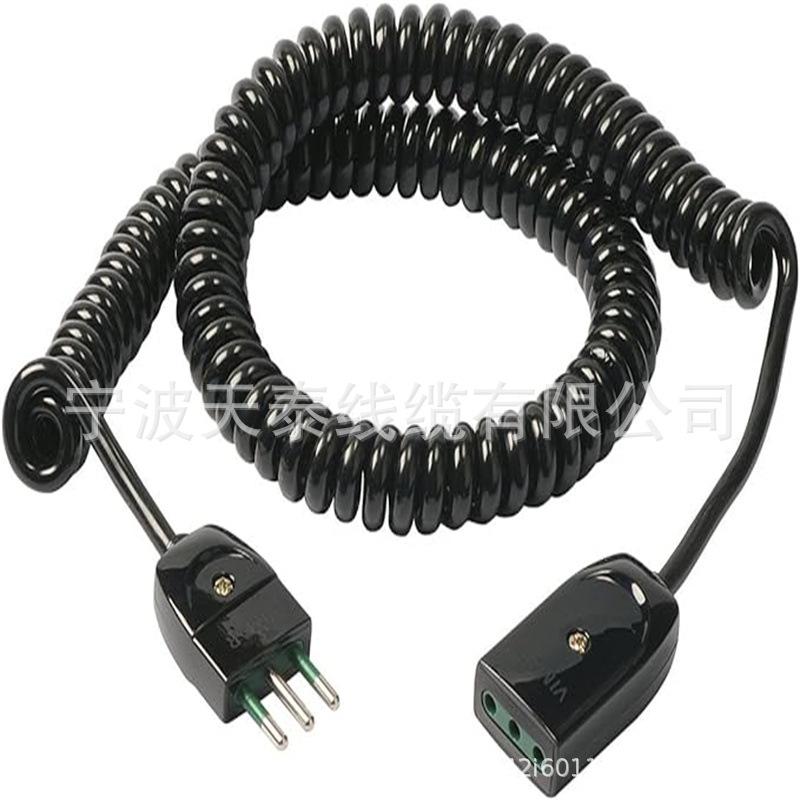 Cable de alimentación de resorte de tres enchufes estándar nacional, cable de alimentación de tres núcleos, cable de alimentación de espiral con enchufe de fibra de vidrio.