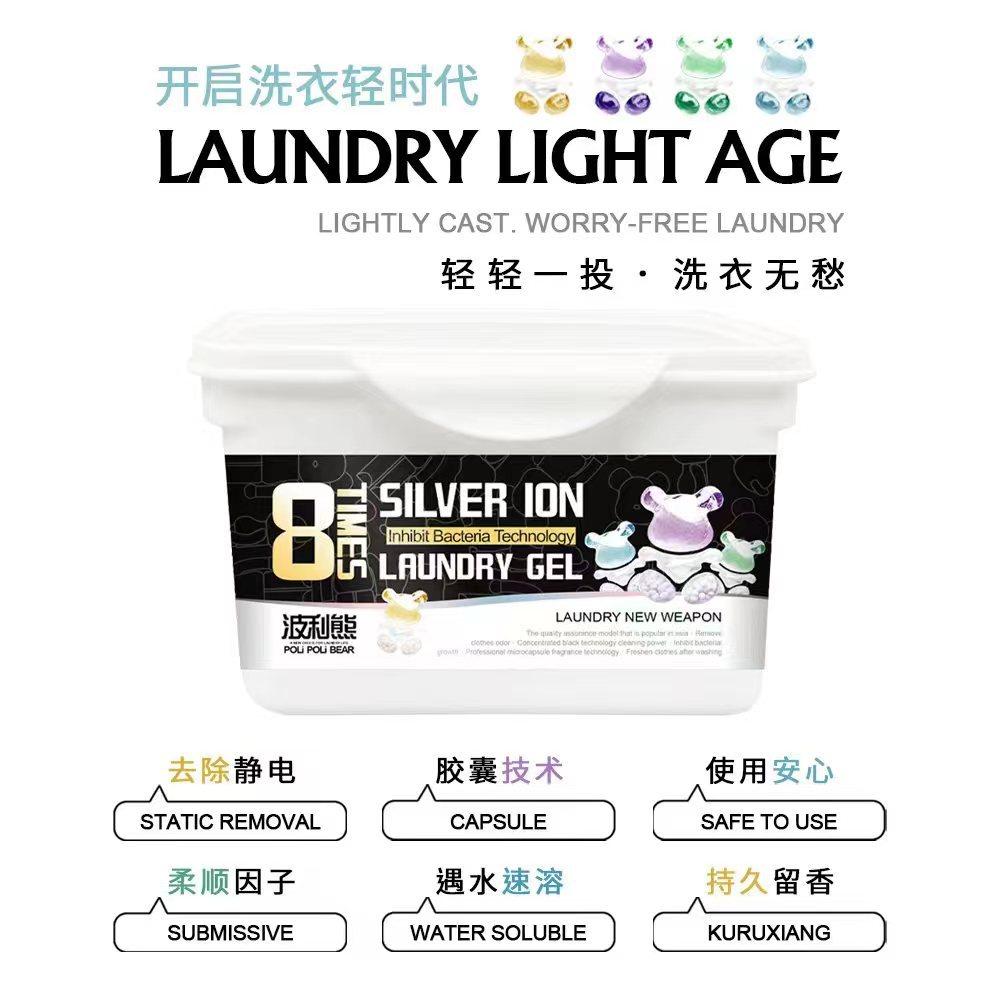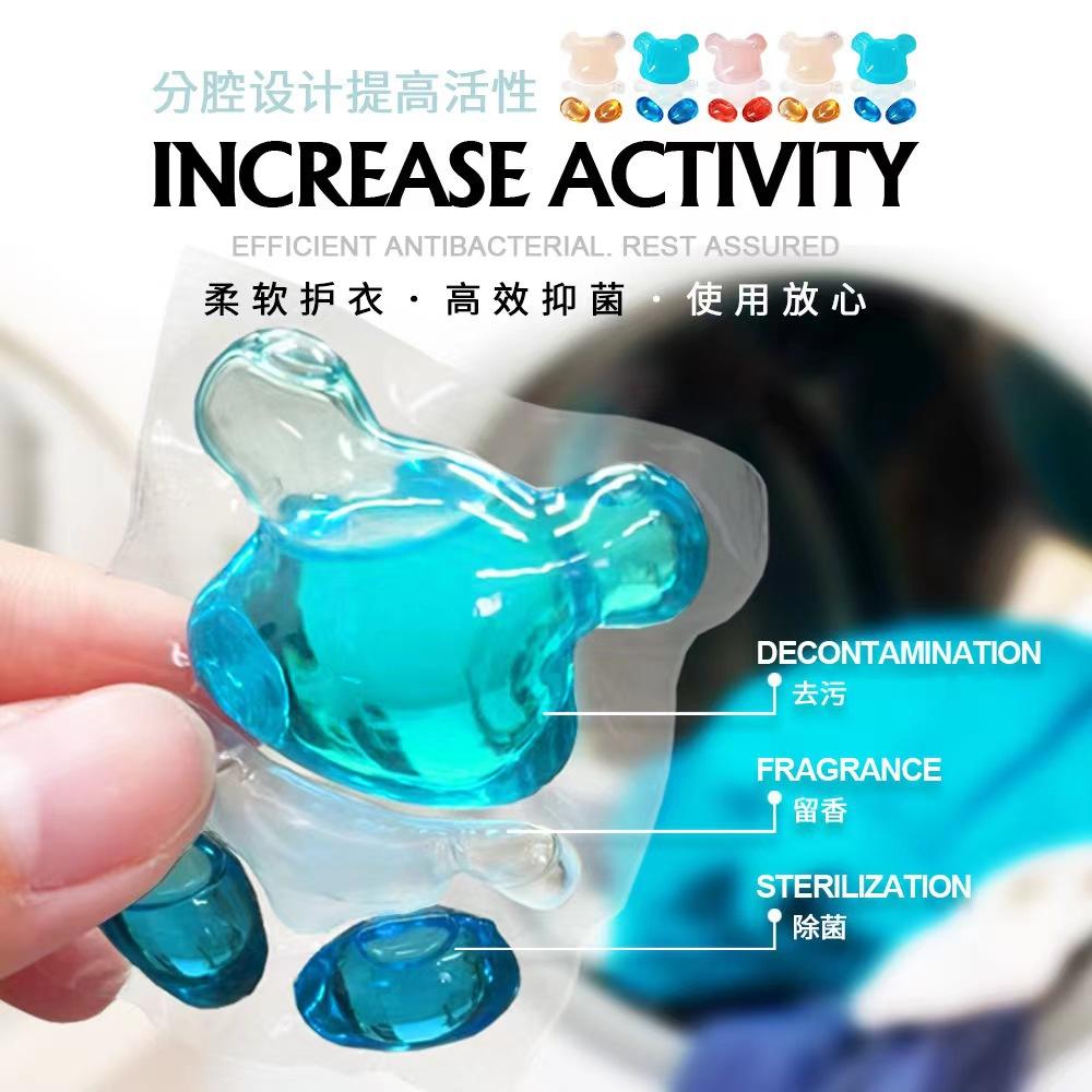 Venta al por mayor de fábrica de perlas de gel para lavandería Polly Bear, detergente líquido con fragancia de grado perfumado, suave, antibacteriano y descontaminante.