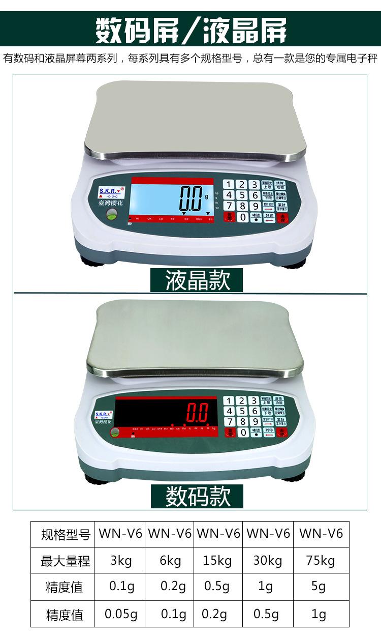 3kg|0.1g, 6kg|0.2g, 15kg|0.5g, 30kg|1g, 3kg|0.05g, 6kg|0.1g, 15kg|0.2g, 30kg|0.5g, 75kg|2g, 3kg|0.02g, 6kg|0.0...