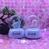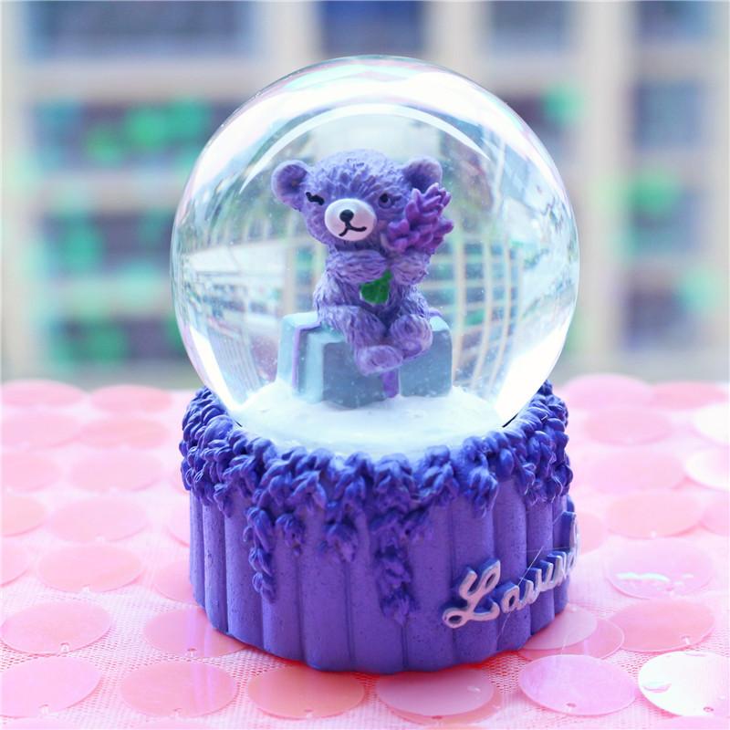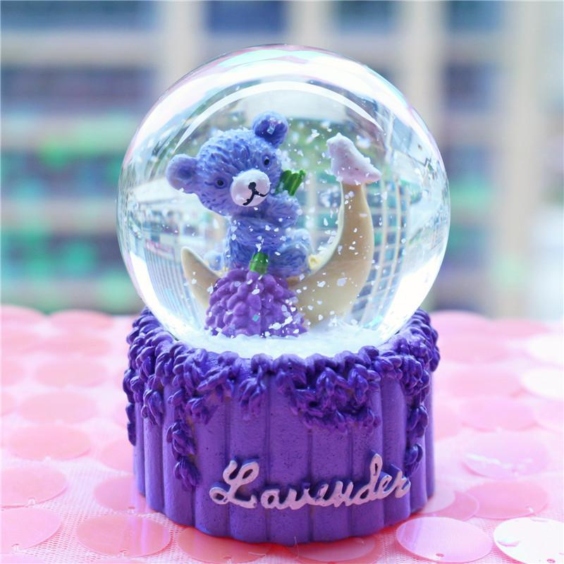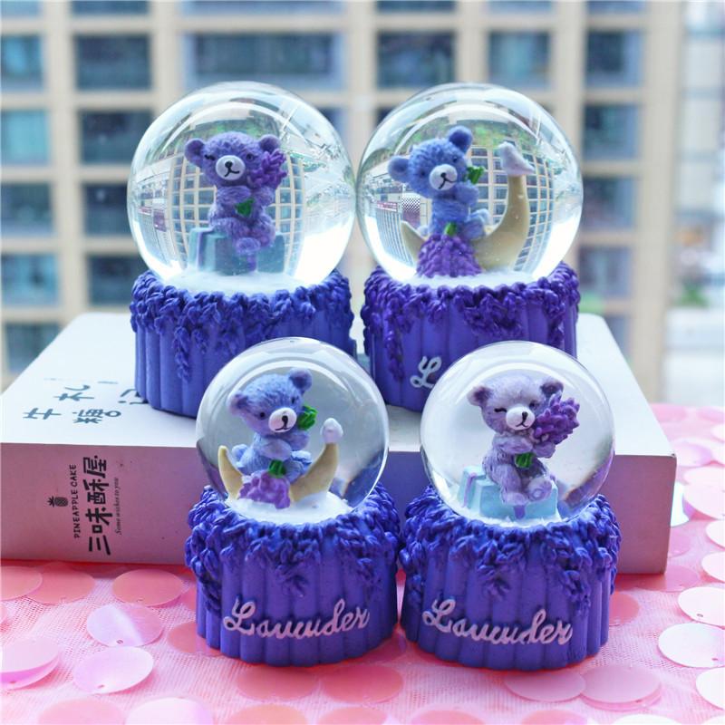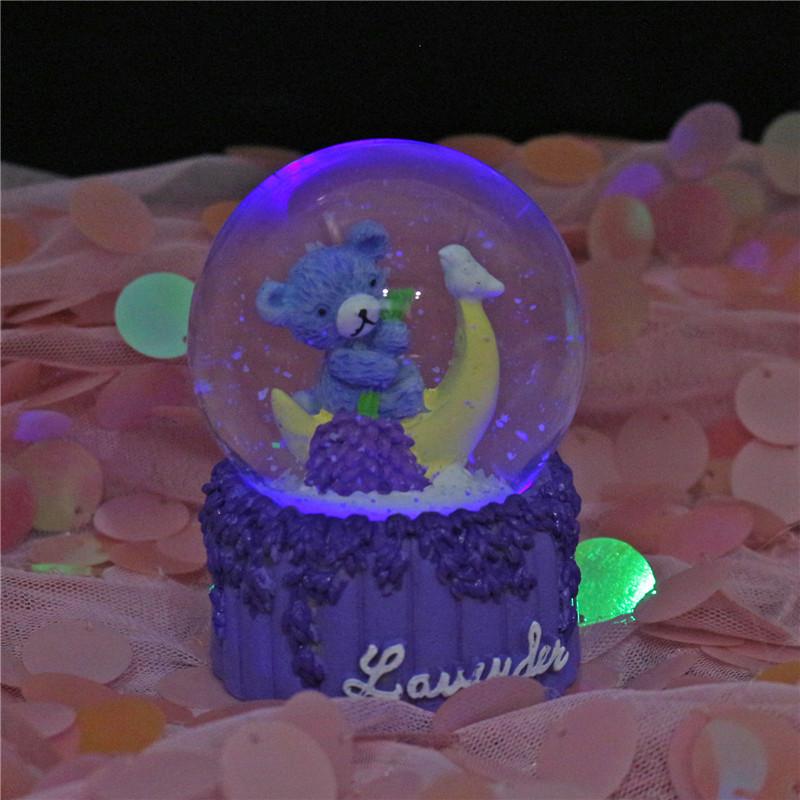 Mini bola de cristal luminosa con forma de oso de lavanda púrpura, regalo de cumpleaños para niños, adornos de resina para escritorio de estudiantes.