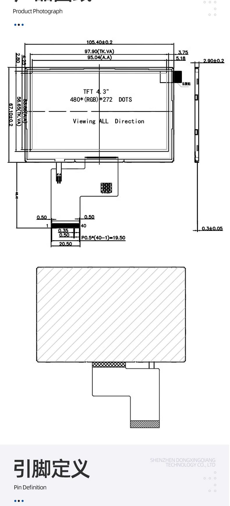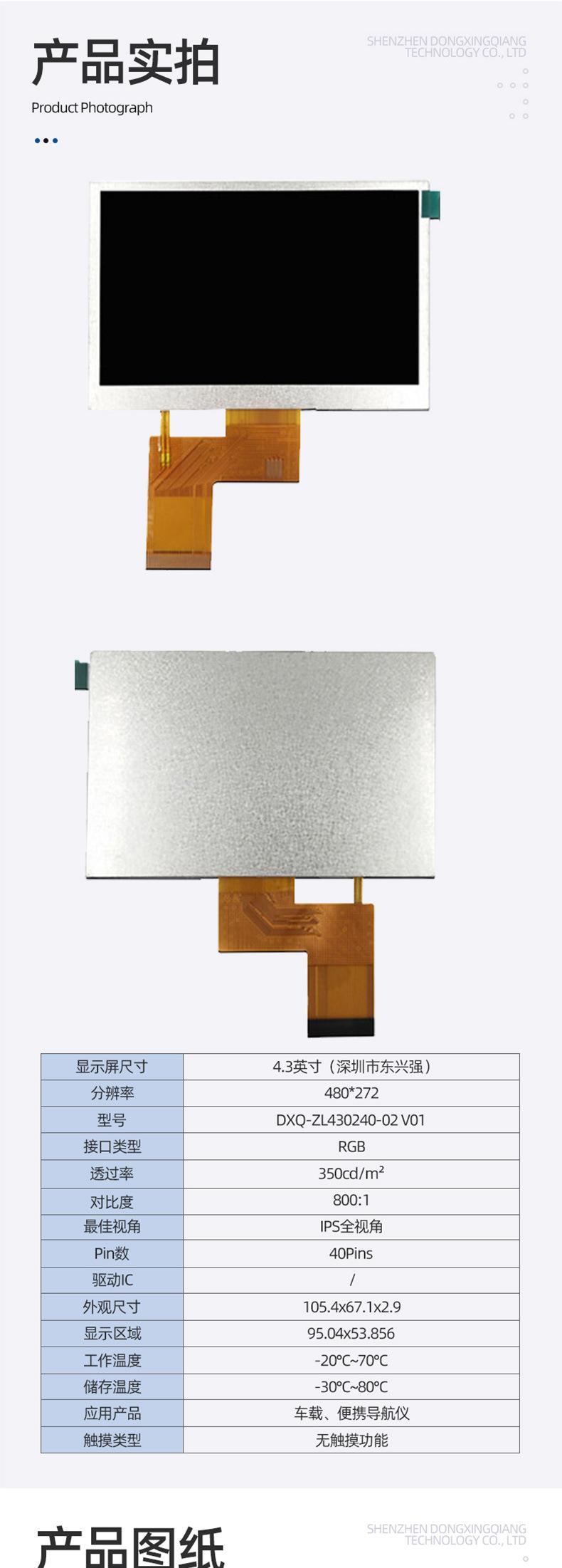 Pantalla LCD a color TFT-LCD de 4,3 pulgadas 480 * 272 + placa de controlador Pantalla IPS Brillo 1500 Producto para exteriores LCD