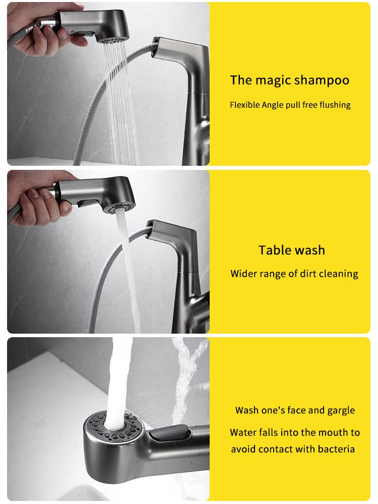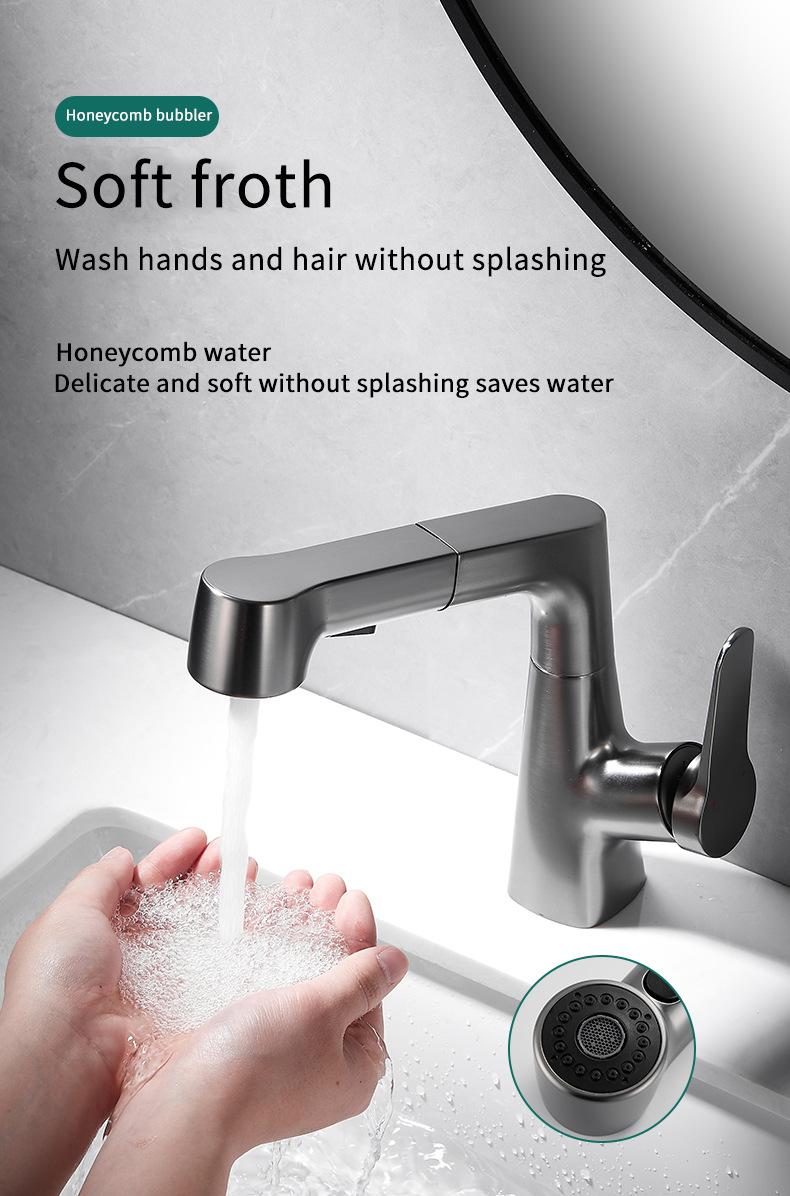Venta directa de fábrica grifo extraíble gris plomo galvanizado por agua grifo retráctil giratorio para lavabo frío y caliente