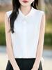 Camisa de gasa de verano 2024 para mujer, nueva, con cuello en V, costuras de encaje de hadas, estilo occidental, camisa de manga corta, blusa blanca holgada.