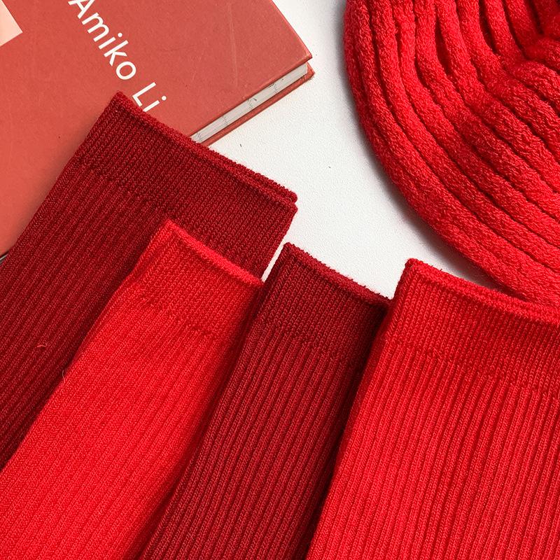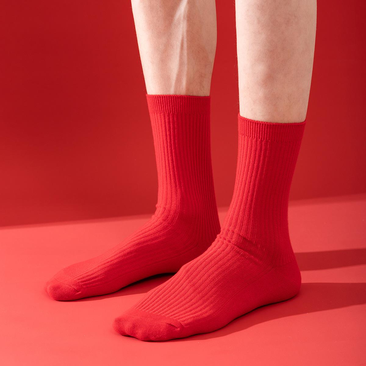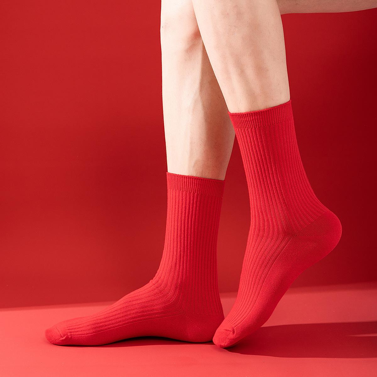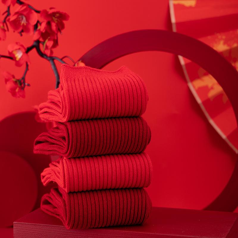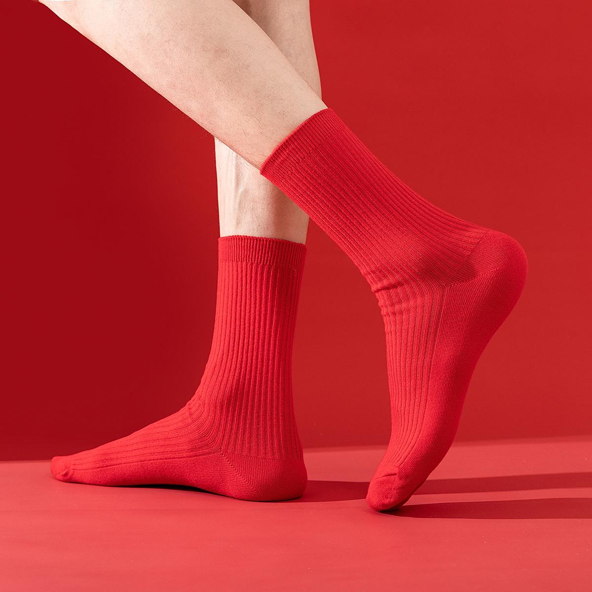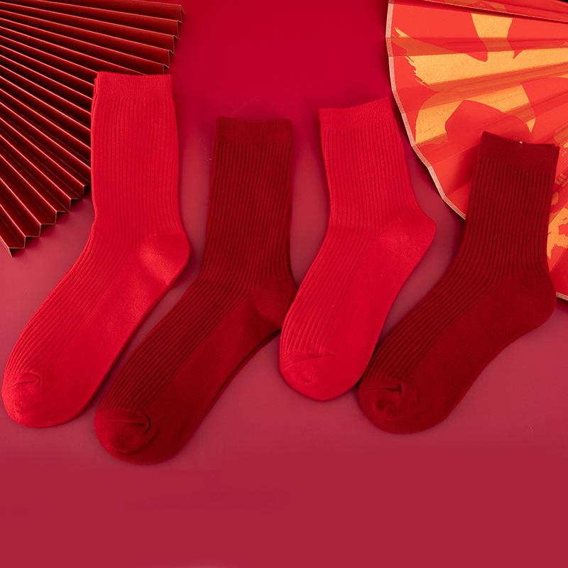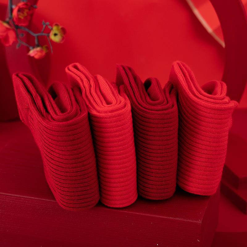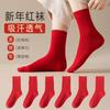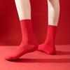 Calcetines rojos de año de nacimiento para mujer, calcetines de otoño e invierno hasta media pantorrilla, calcetines de algodón de doble aguja, calcetines rojos festivos de Año Nuevo, medias de boda para hombre
