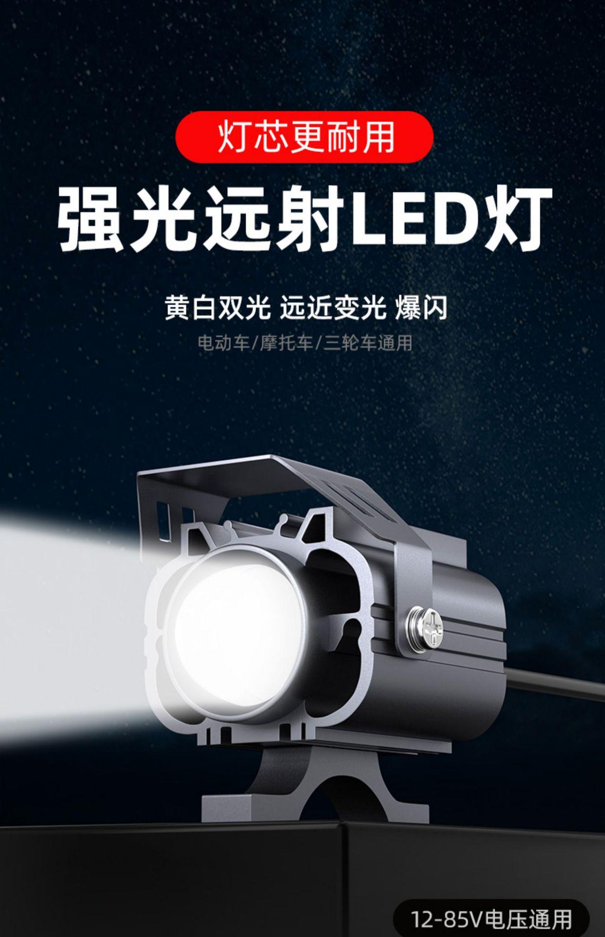 Faro LED de Motocicleta Transfronterizo Bicolor Cañón Pequeño de Acero Luz Blanca y Amarilla Faro Super Brillante Impermeable 9-80V Faro Delantero