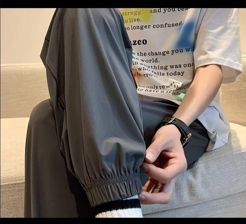Pantalones casuales holgados para hombre, estilo coreano, modernos, combinables, de verano, finos, hasta el tobillo, novedad de 2023