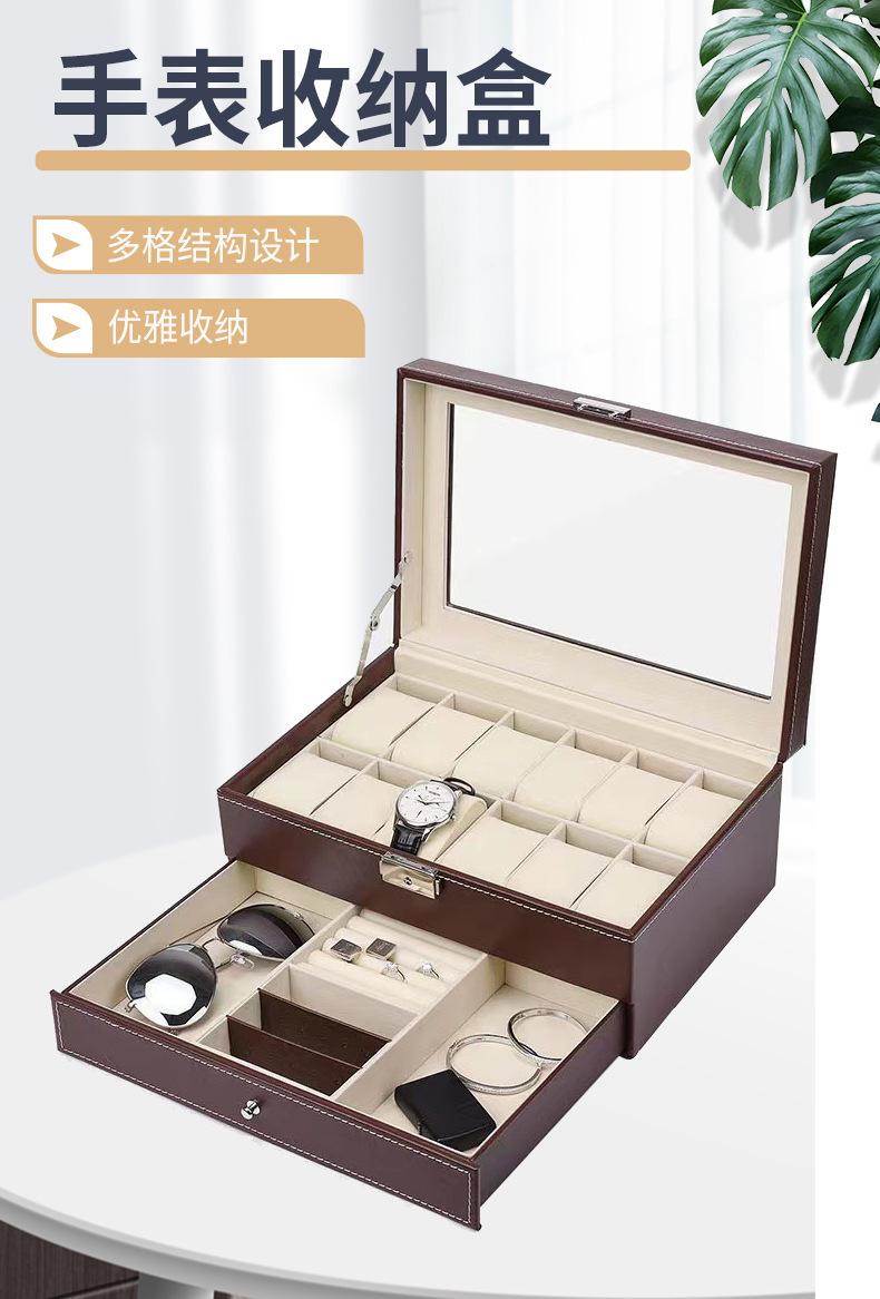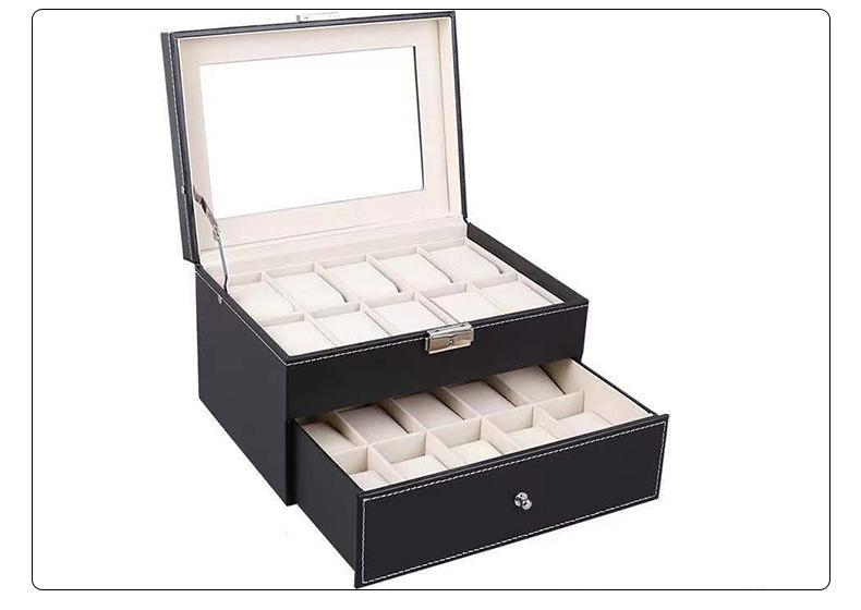 Caja de Relojes de 12 Bits de Doble Capa Caja de Joyería de Cuero PU Ventana Transparente Caja de Relojes de 12 Bits Caja de Joyería Embalaje para Almacenamiento de Joyas