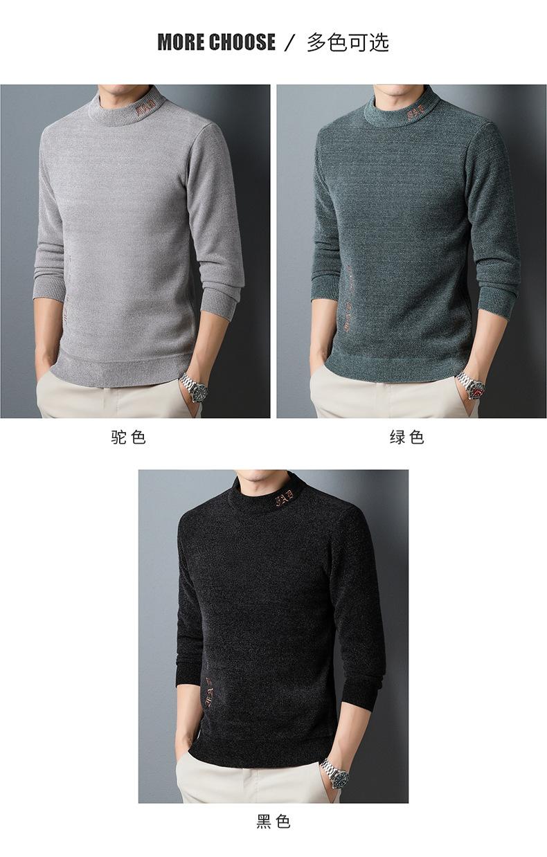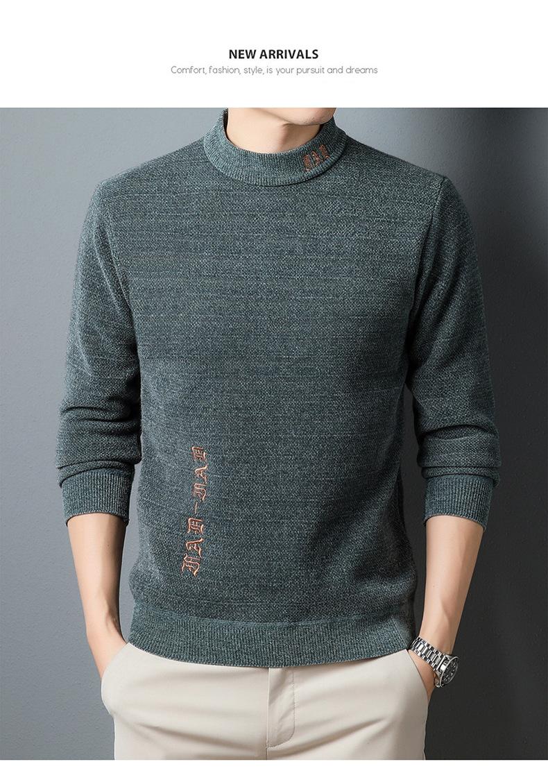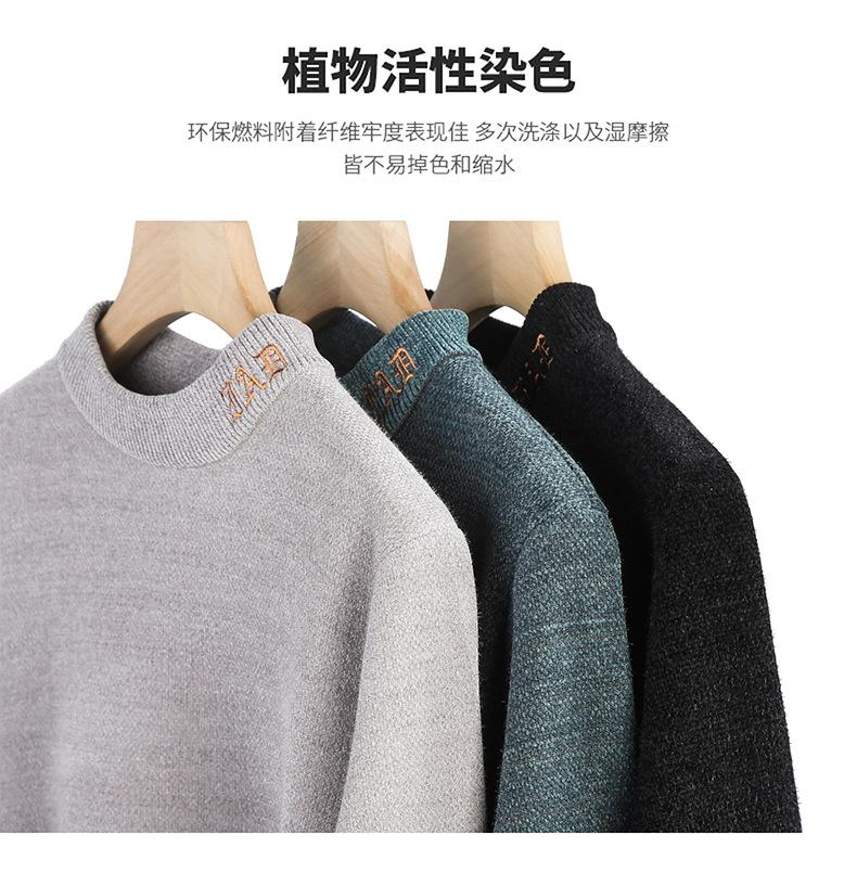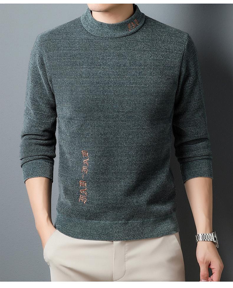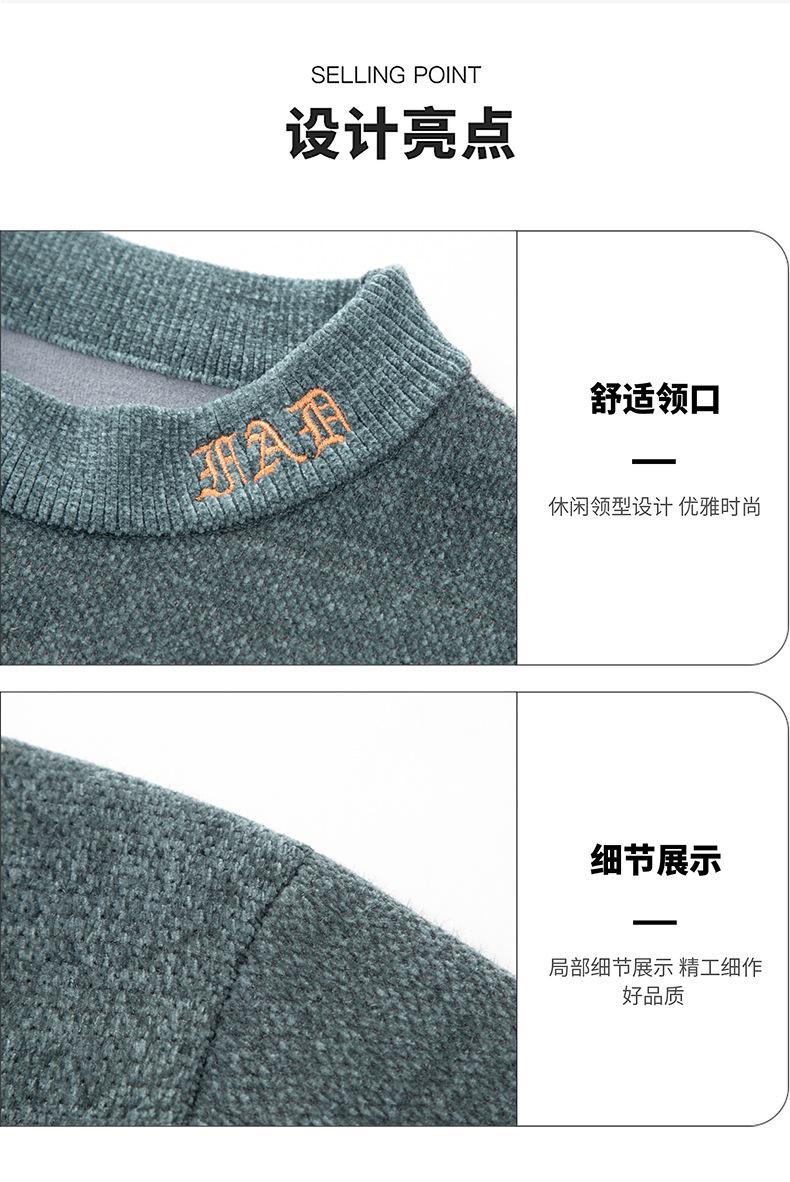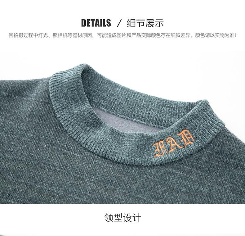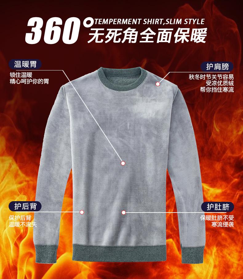 Suéter de cuello redondo con forro polar para hombre, suéter grueso de invierno de manga larga, camisa de fondo para hombre, top de lana cálida y gruesa de moda