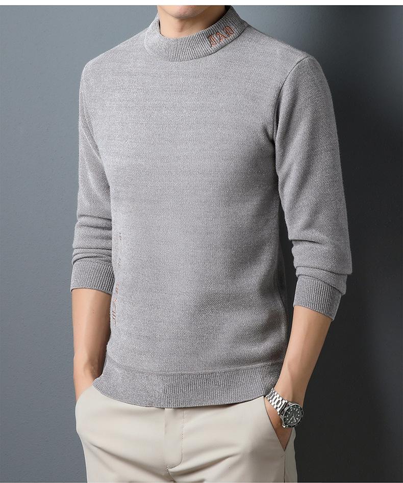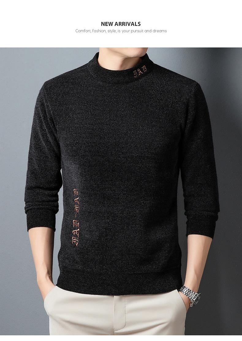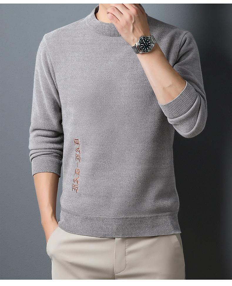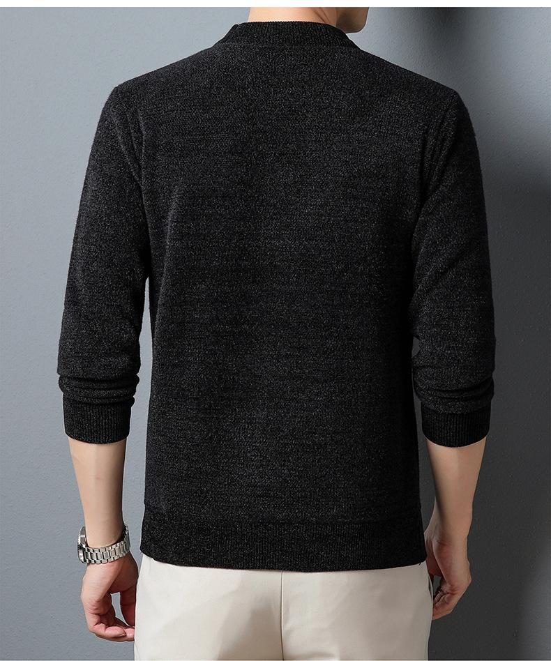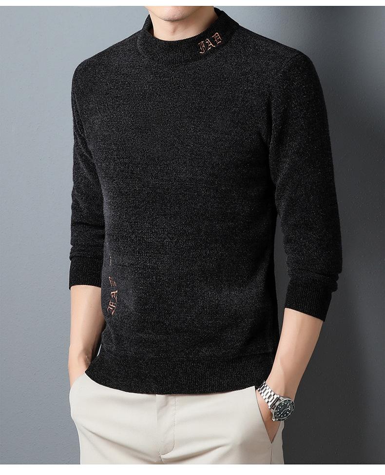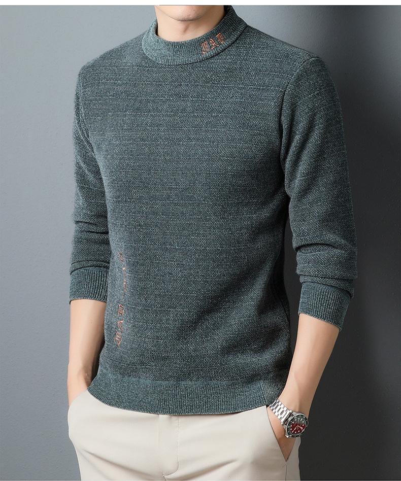 Suéter de cuello redondo con forro polar para hombre, suéter grueso de invierno de manga larga, camisa de fondo para hombre, top de lana cálida y gruesa de moda