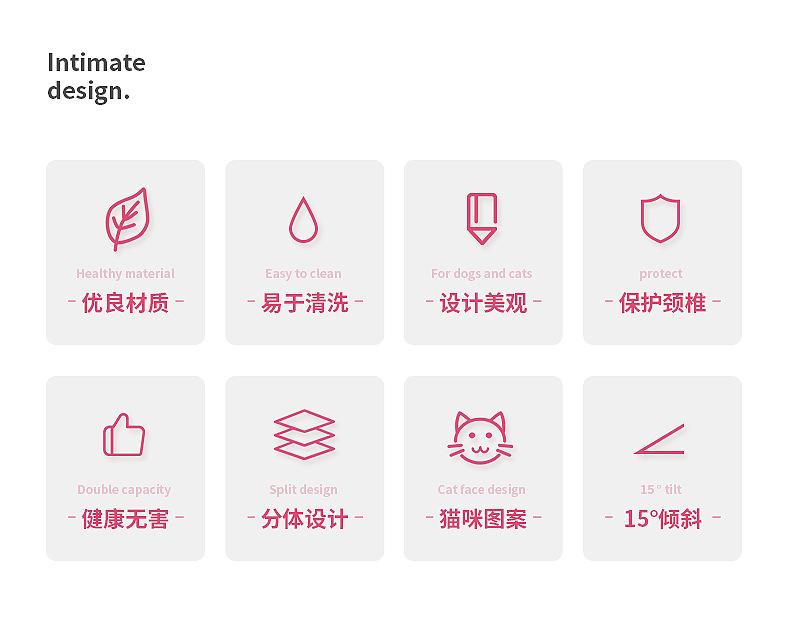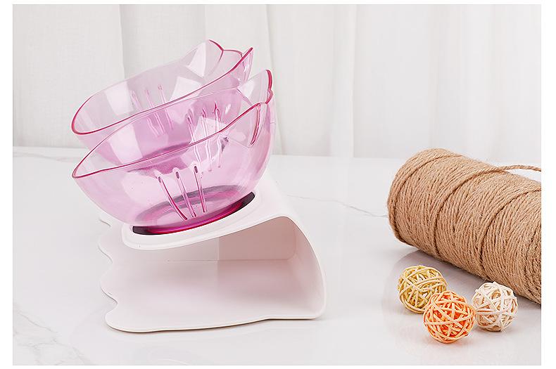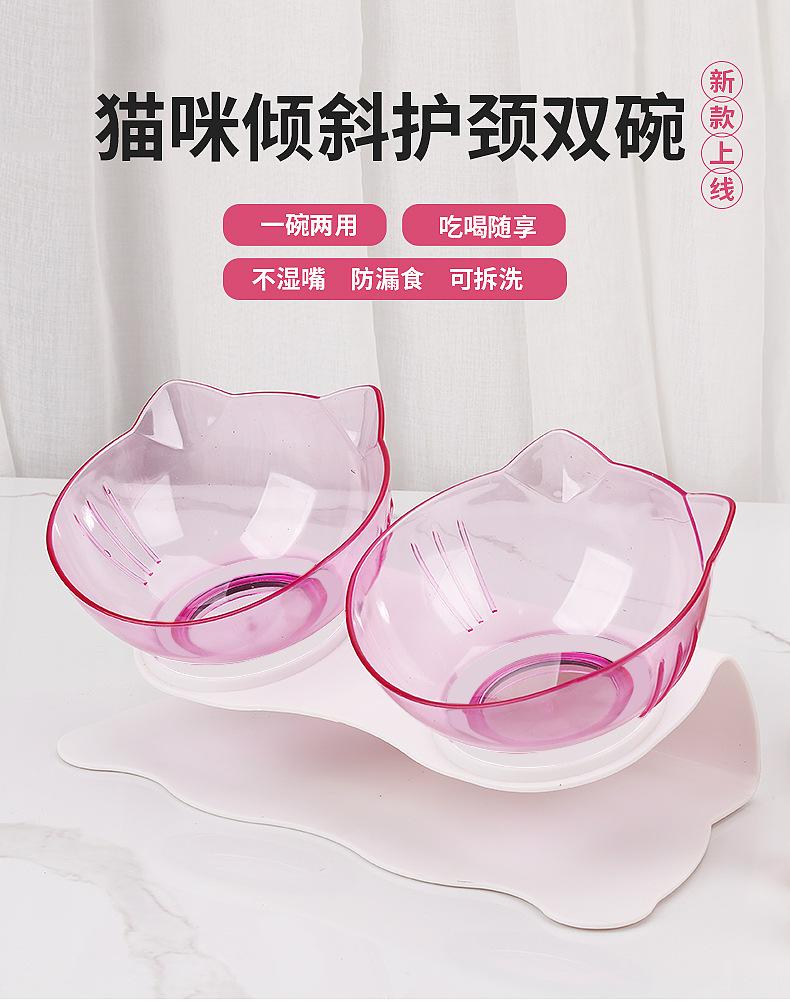 Dispositivo para Alimentar y Dar de Beber a Gatos y Perros, Tazón de Plástico, Tazón para Gatos, Tazón para Perros, Protección de Cuello Inclinado, Comedero Doble Antideslizante para Mascotas