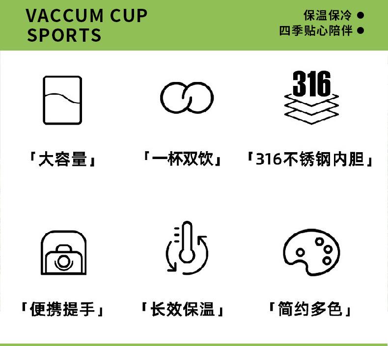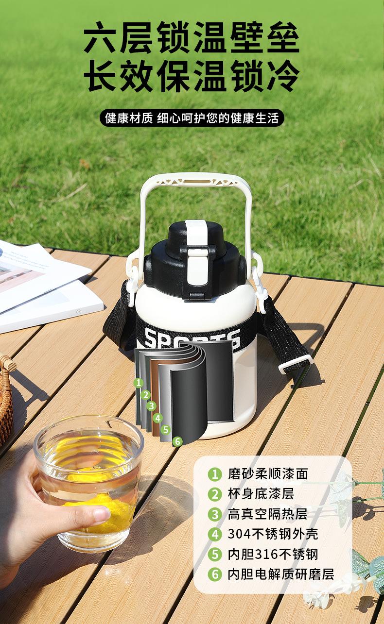 Nueva taza de agua de gran capacidad y aspecto atractivo, taza de vacío de acero inoxidable 316 de grado alimenticio, tetera deportiva de toneladas