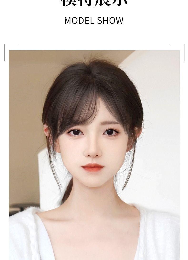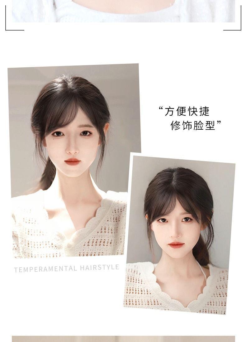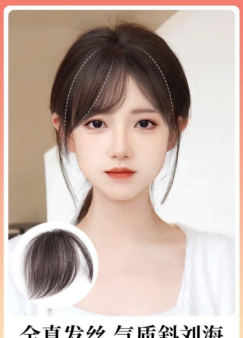 Peluca para mujer con flequillo oblicuo, pieza de peluca, cabello real completo, pieza de reparación del cabello, pieza de peluca con flequillo frontal natural invisible sin marcas