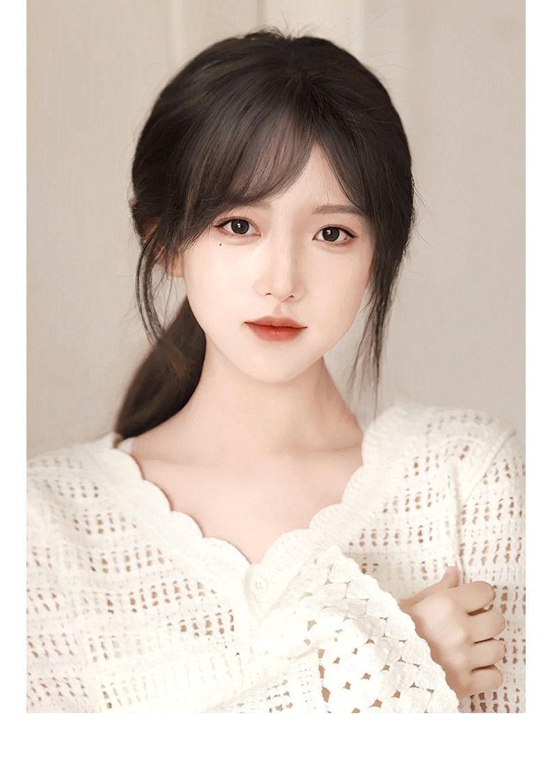 Full real hair with oblique bangs and no sideburns [brown black], Full real hair with oblique bangs and no sid...