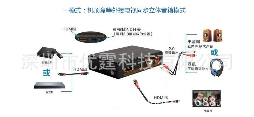 yotodo el caminoHDMIEntrada de señal, convertida en un canalHDMI+Audio (SPDIF+R/L)producción