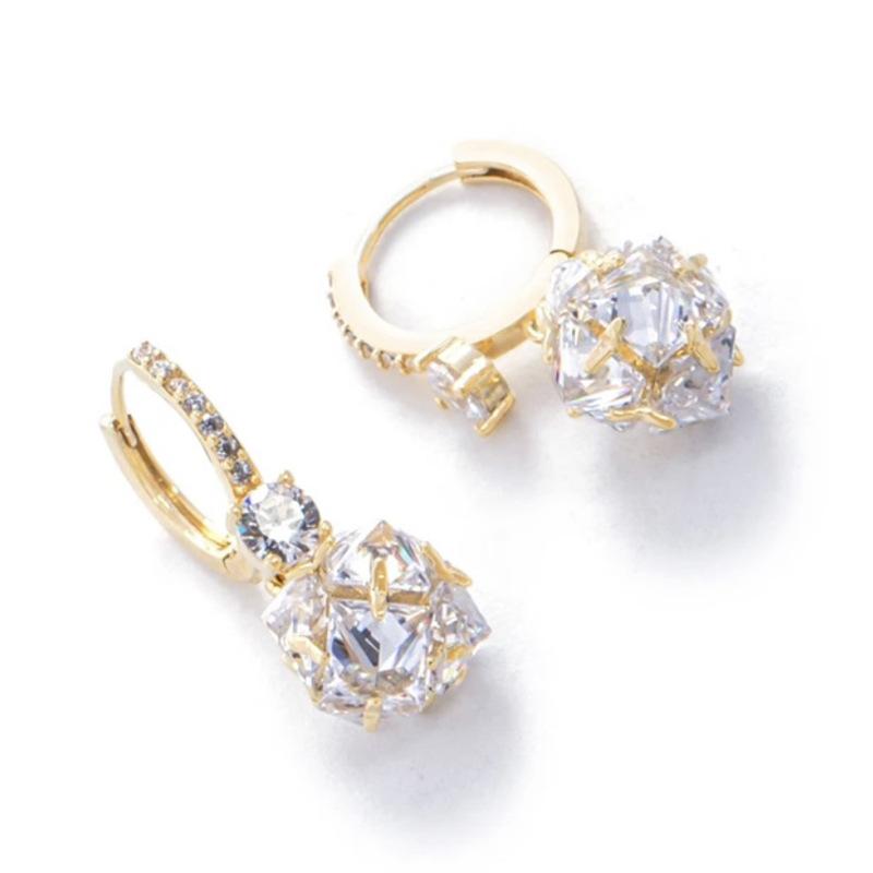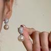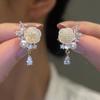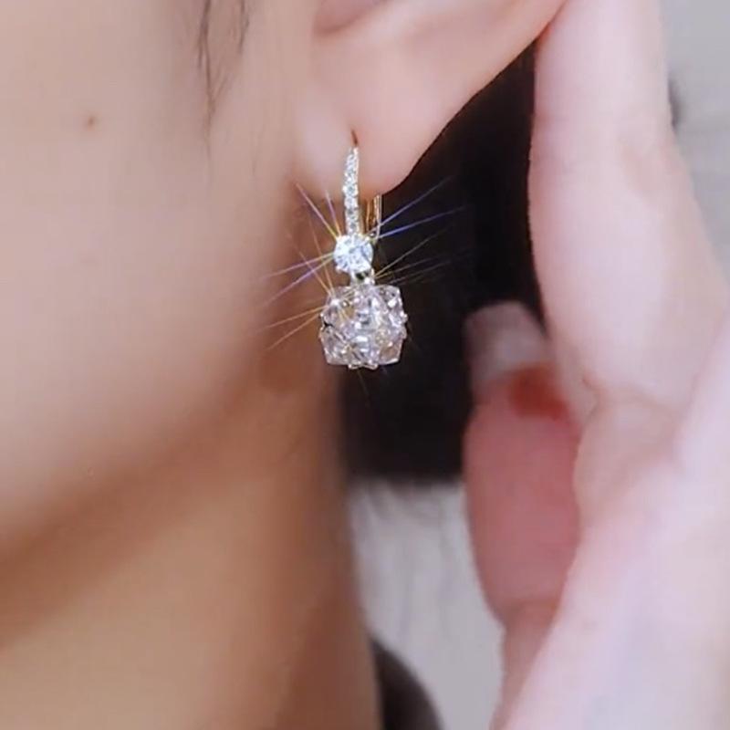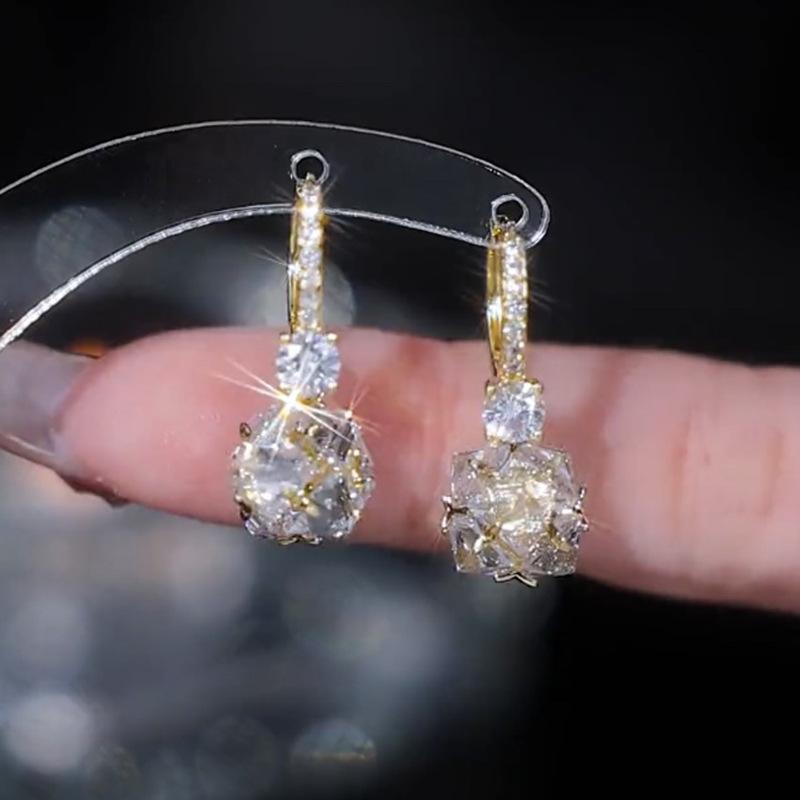 Pendientes de cristal de circón cuadrado para mujer, ligeros, de lujo, con diseño de nicho, elegantes y exquisitos, con colgante de bola y hebilla pequeña para la oreja.