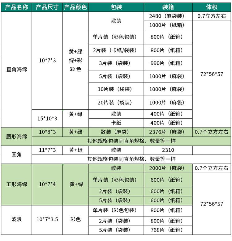 Right angle (10*7*3cm), Waist cotton (10*8*3cm), Fillet (11*7*3cm), Right angle (9*6*3cm), Right angle (15*10*3cm)