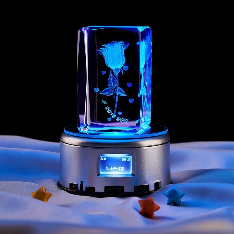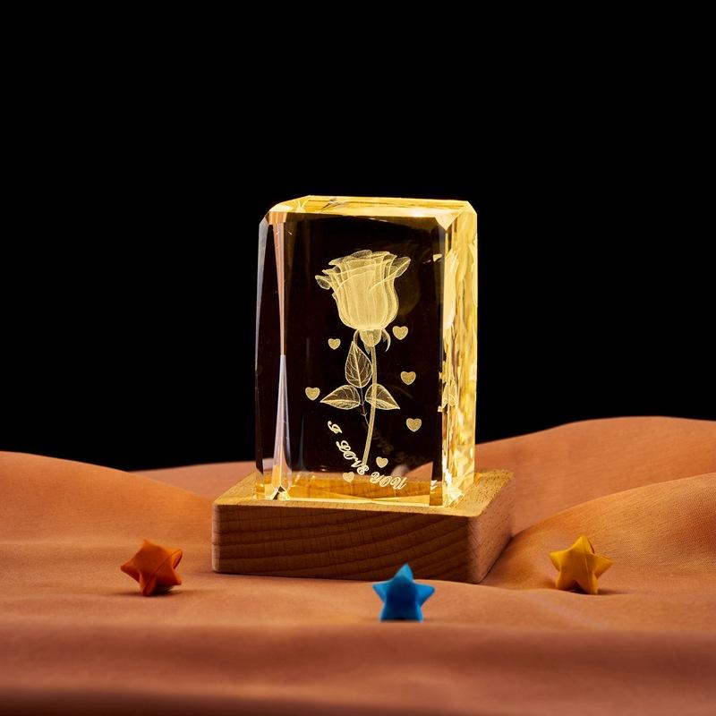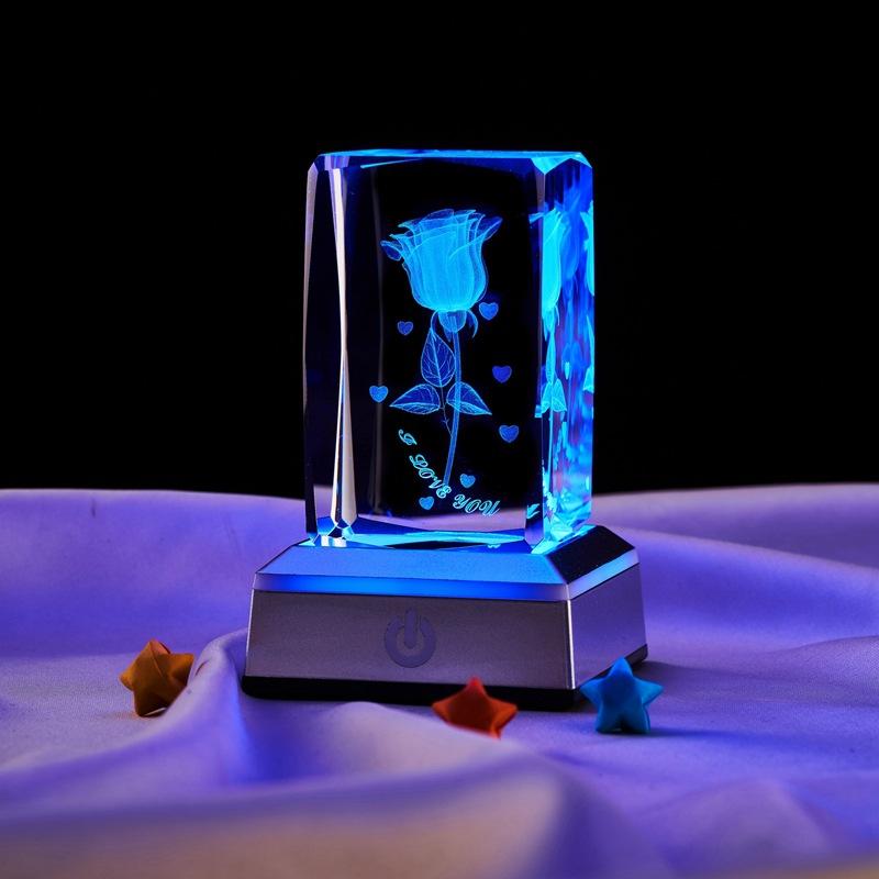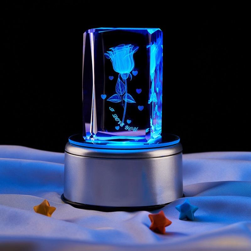 Venta al por mayor transfronteriza cubo de cristal con grabado láser 3D estéreo de rosa luz nocturna creativa para dormir de ensueño