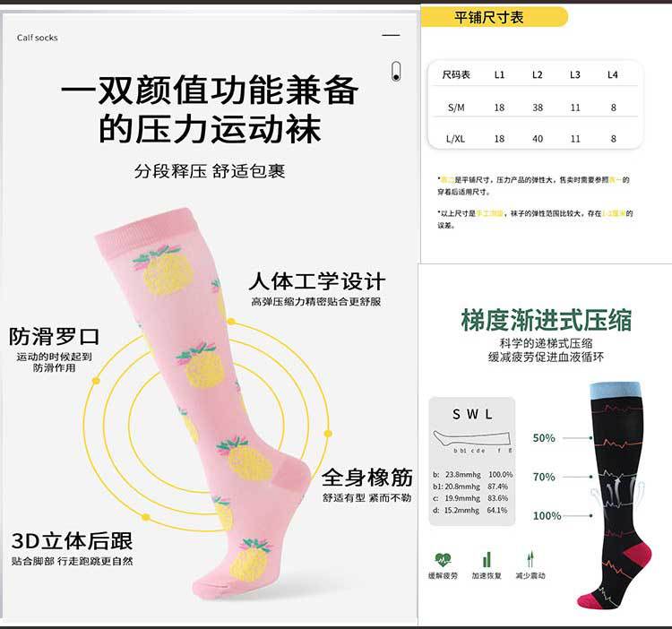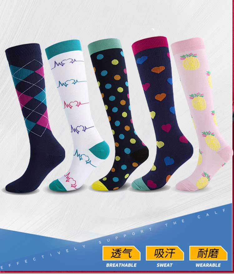 Suministro Transfronterizo de Calcetines Elásticos Jacquard de Presión para Piernas para Hombres y Mujeres en Europa y los Estados Unidos, Calcetines de Compresión Deportiva, Medias, Calcetines de Yoga