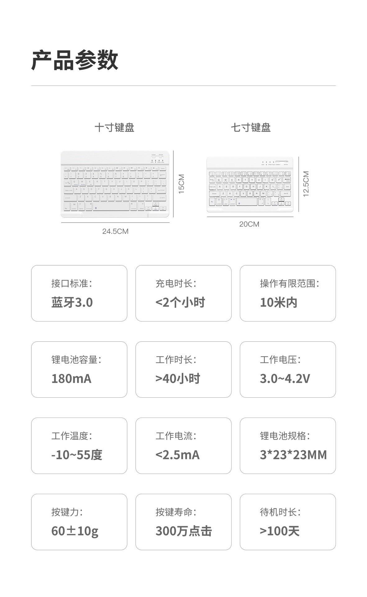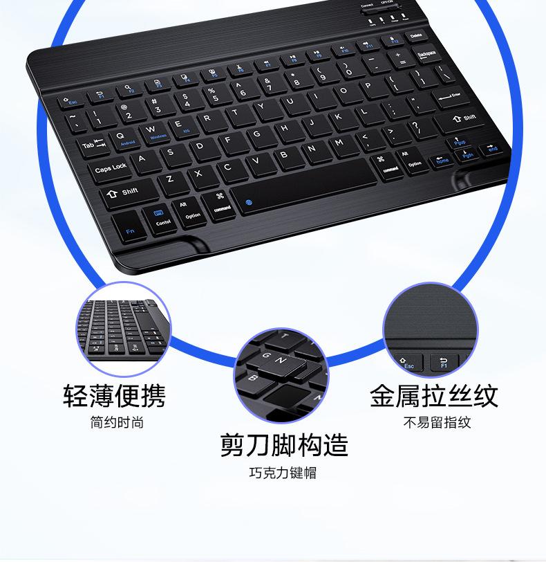 Teclado inalámbrico Bluetooth x3 de 10 pulgadas con tapa redonda, adecuado para iPad, silencioso, recargable, delgado y inalámbrico.