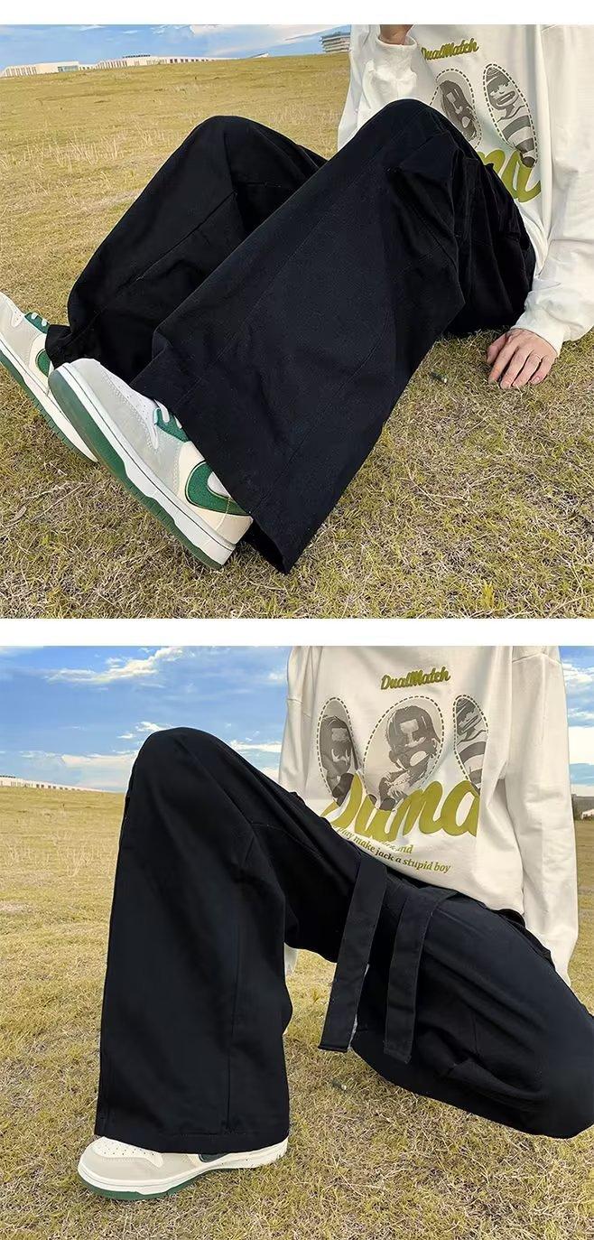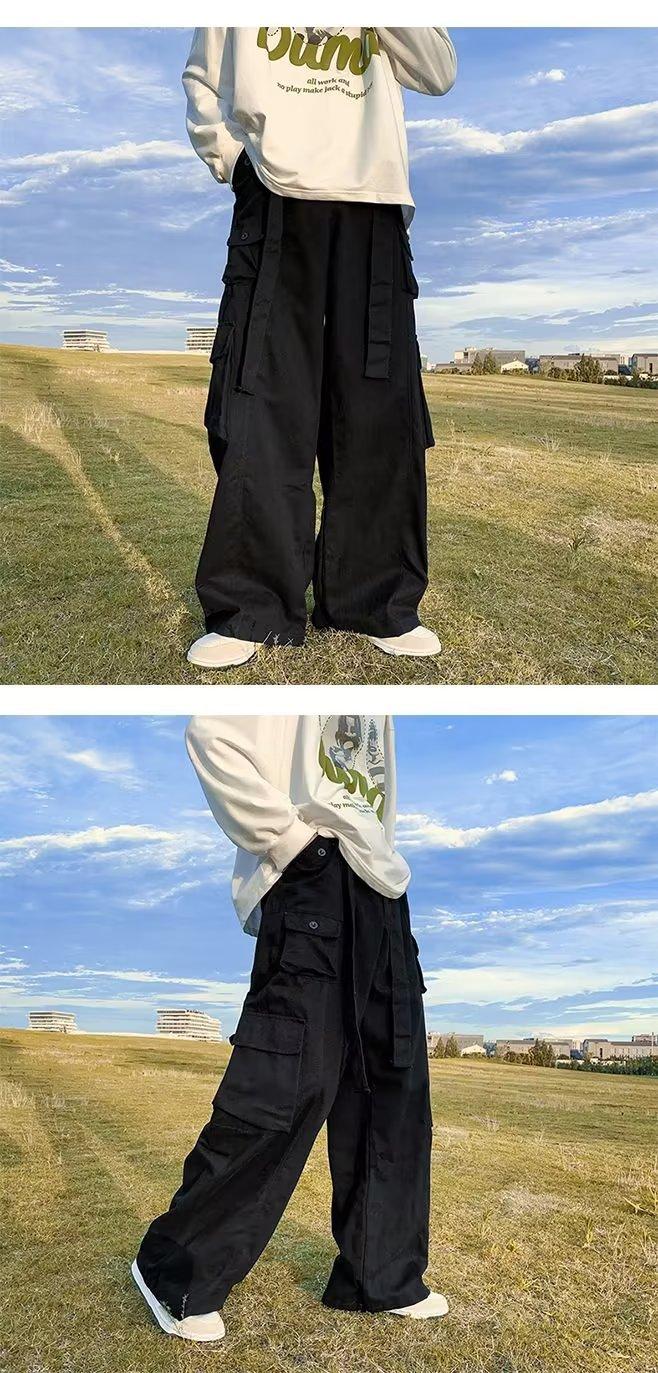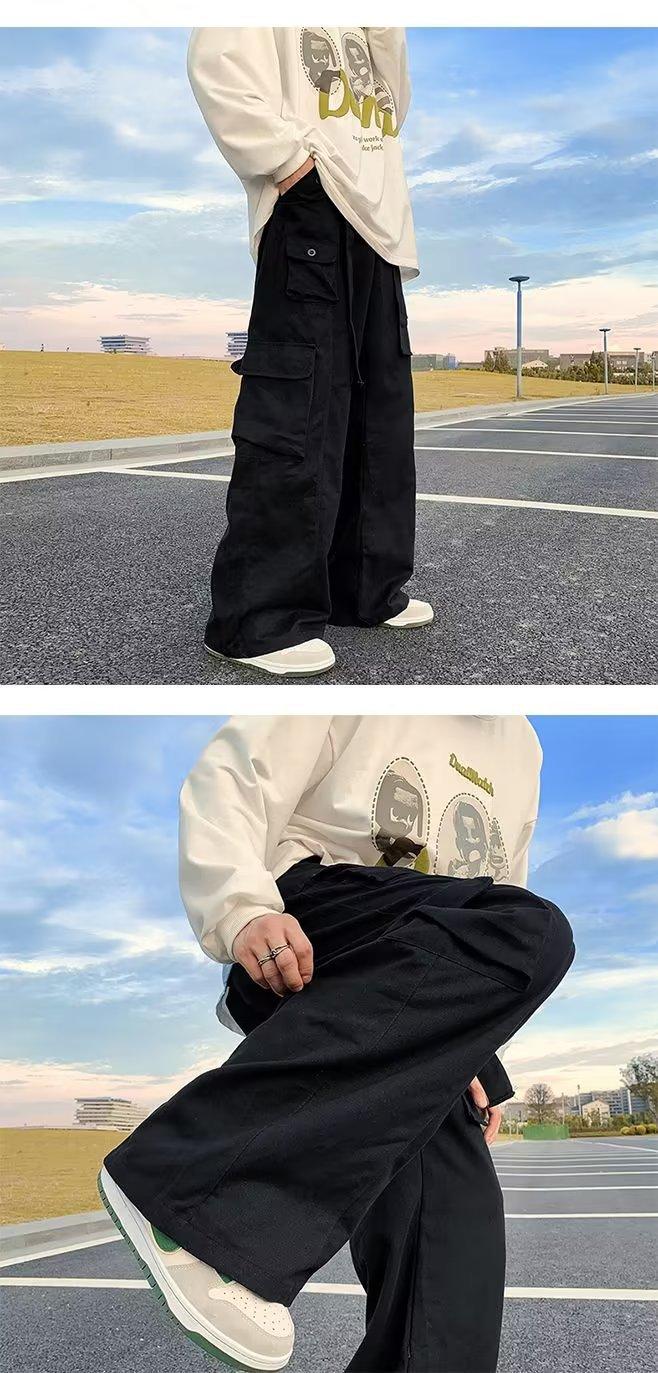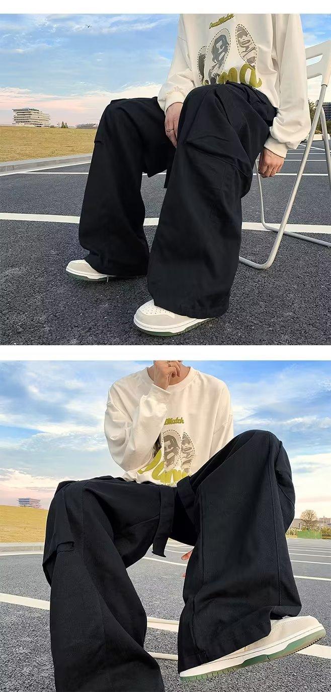 Mono negro para hombre, novedad de otoño, estilo Hong Kong, pantalones casuales holgados de moda, pantalones de fregado de pierna ancha y recta.
