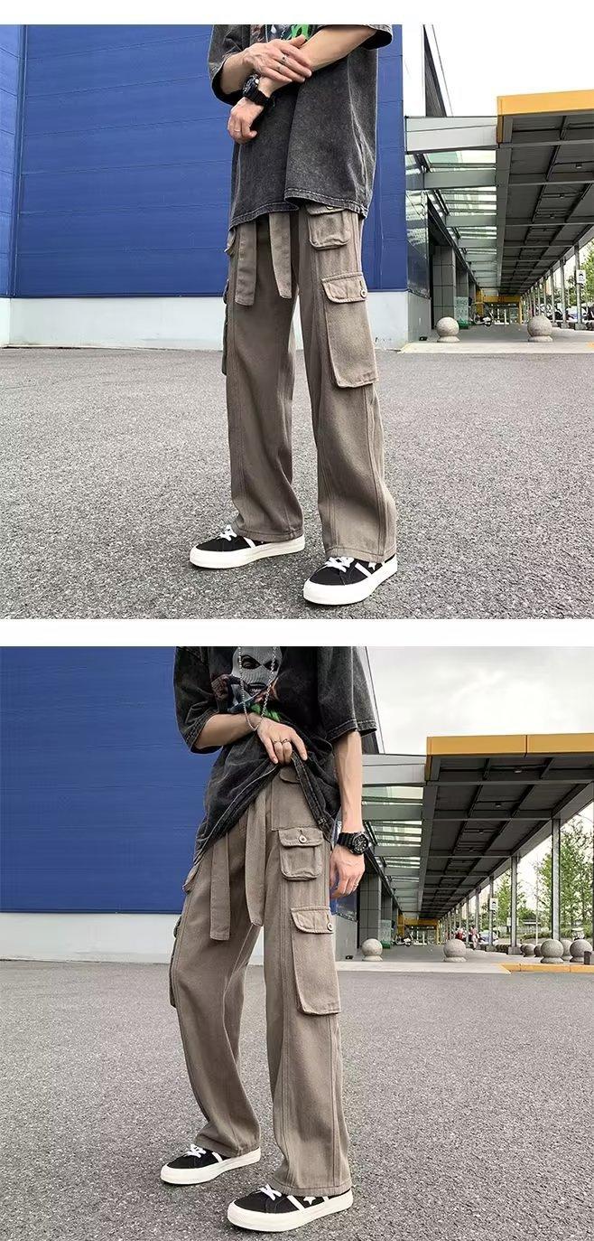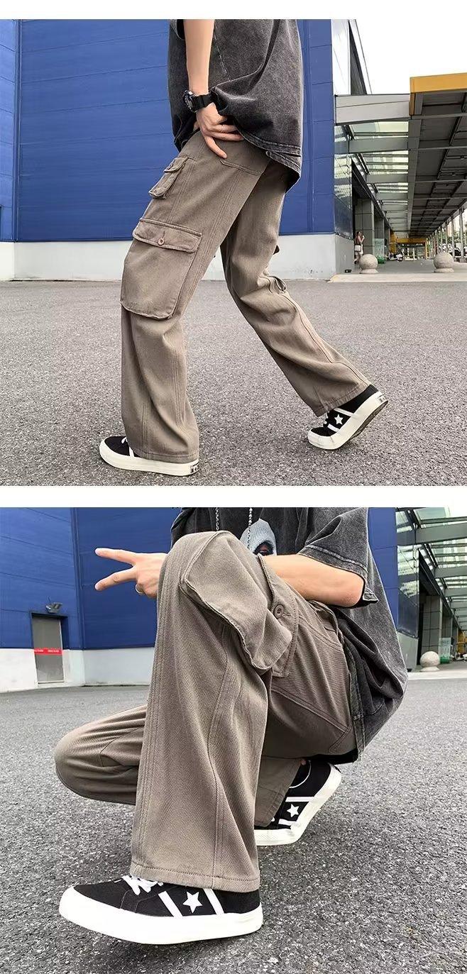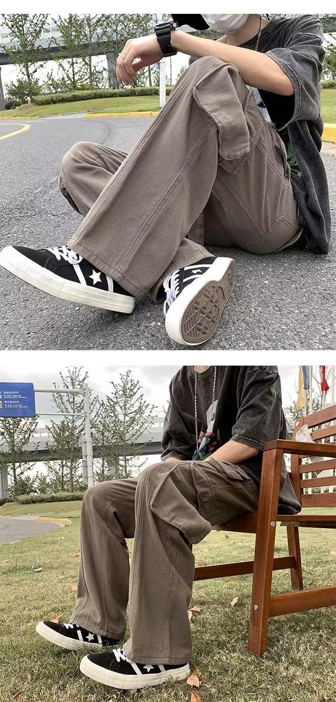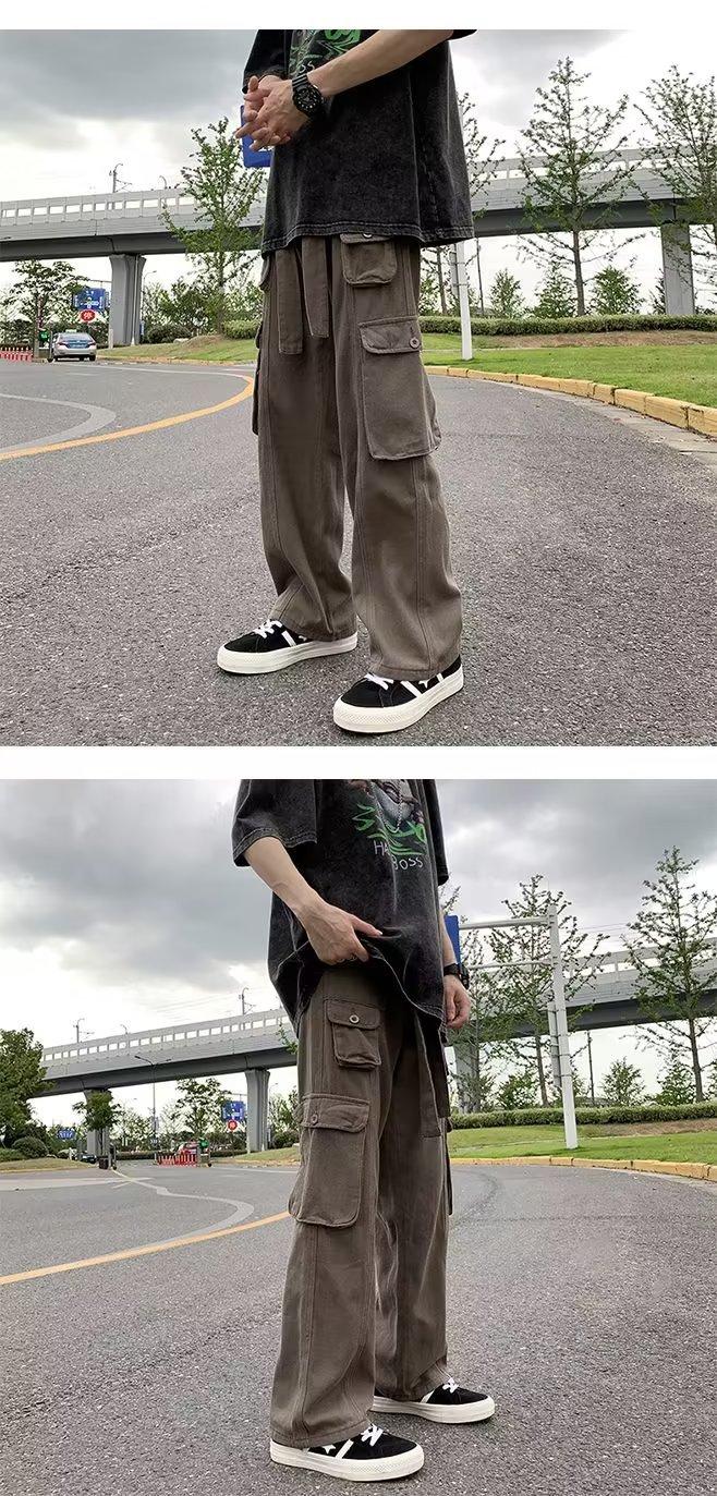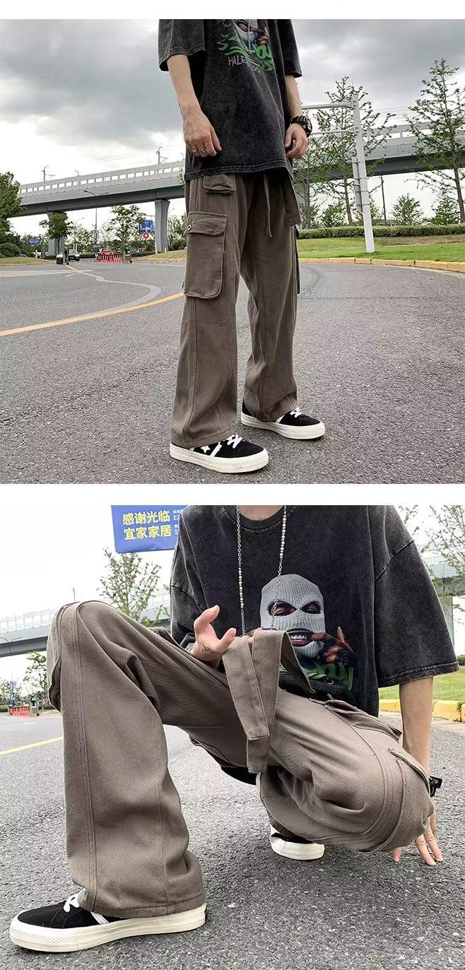 Mono negro para hombre, novedad de otoño, estilo Hong Kong, pantalones casuales holgados de moda, pantalones de fregado de pierna ancha y recta.