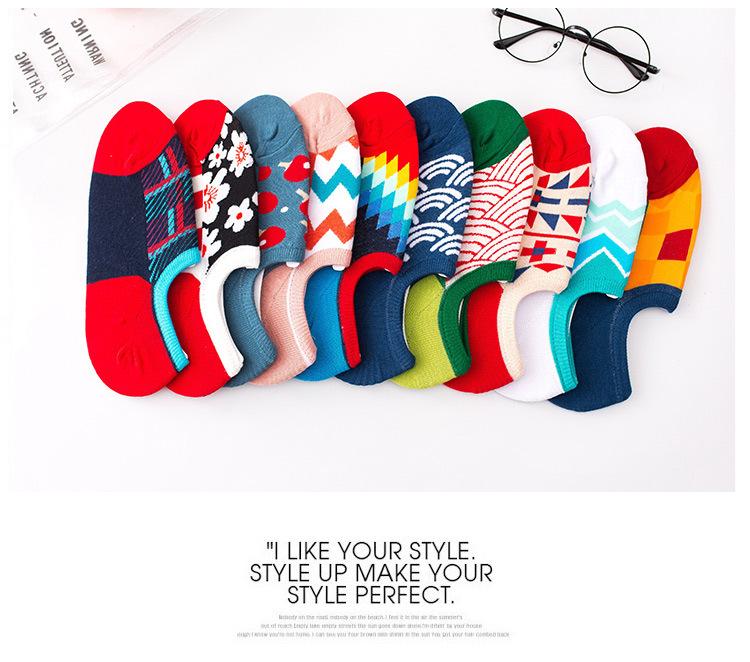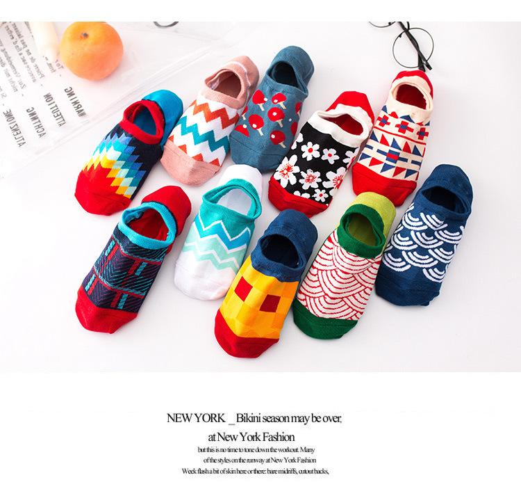 Compra Calcetines de algodón con patrón geométrico retro casual europeo y americano para mujer, calcetines náuticos absorbentes del sudor, calcetines invisibles antideslizantes de silicona al por mayor al por mayor en Joom.pro