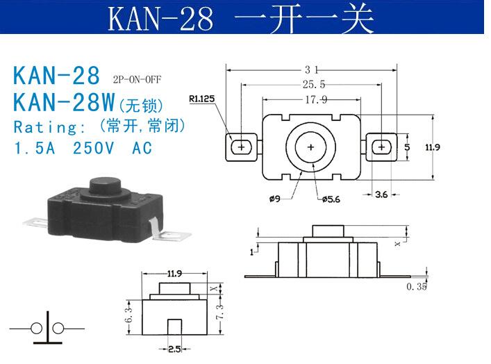 Interruptor de linterna de alta intensidad KAN-28, 1,5 A, 250 V, pulsador autoblocante SMD de 18 x 12 mm