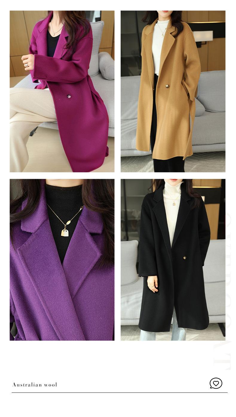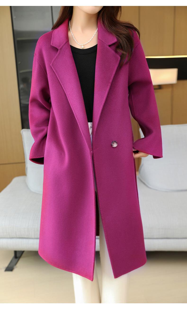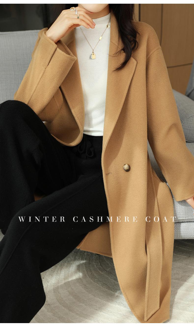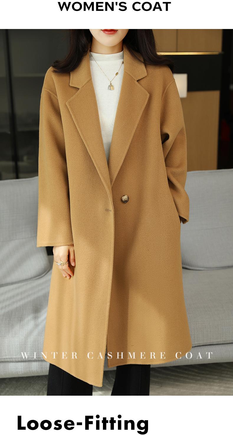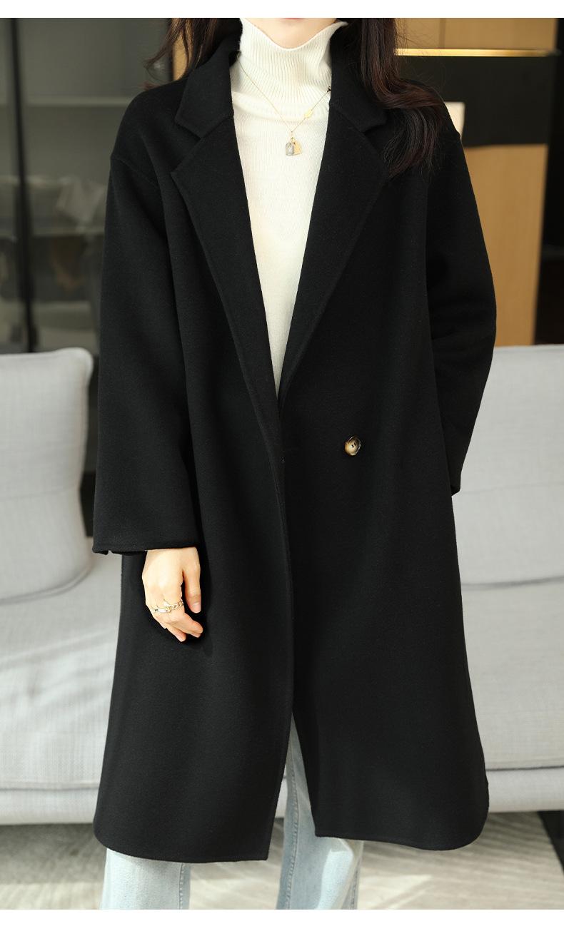Abrigo de Cachemira de Doble Cara para Mujer Otoño e Invierno 2024, Estilo Coreano, de Alta Gama, Abrigo de Lana Suelto, Largo Medio con Solapa Grande